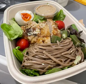 喺铜锣湾返工,收工去𠮶度,同朋友倾嘢。气氛几好,好似好多人都系𠮶边倾嘢,虽然有啲黑,但我觉得气氛好唔错,啲灯打落枱面,令人专注手上嘅工作。嗌咗个沙律,有荞麦面、有鸡肉、有蕃茄、有沙律菜。都系咁啦,普普通通,唔系为咗食嘢而去,算系一个味道OK又健康嘅选择,价钱一般。我个朋友嗌咗个greek yoghurt🍓🫐,有啲杂莓,有啲谷物喺上面。都系不过不失,系健康嘅选择。职员都几好,快手快脚,好Nice 。