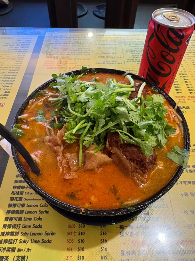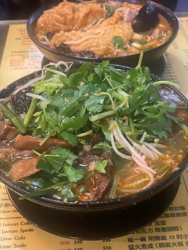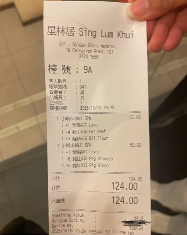 穿過彌敦道旁逼仄的樓梯,三樓的星林居用霓虹光管劃開兩個世界——紅底白字的「酸辣米線」燈箱下,兩碗沸騰著江湖氣的小鍋米線正冒著白煙。$124換來兩碗鋪滿配料的痛快,正。小鍋米線的靈魂在湯底,這兒的酸辣配方帶著市井的張揚。酸味並非單薄的醋精,而是醃製酸菜發酵出的渾厚底韻,辣勁則如漲潮層層疊加,麻油香氣像無形的手撩動食慾。首碗選配紫菜、肥牛、麵筋,吸飽湯汁的麵筋是隱藏主角,咬下時酸辣汁在齒間迸射;肥牛雖非頂級和牛,但油脂恰如其分地中和辣度,與紫菜的海洋氣息構成奇妙平衡。第二碗的豬肚與豬紅組合更見功力。豬肚燉得軟糯不失彈性,處理得毫無羶味;豬紅滑如凝脂,氣孔裡飽藏湯髓,與嫩滑米線形成雙重奏。特別要贊那勺肉碎,炸得金黃酥香,如星斗灑落湯河,每口都吃出驚喜。米線本身柔韌度剛好,在濃湯浸泡十分鐘仍保持筋骨。怕辣者可選小辣。環境是典型的港式樓上店,摺檯膠凳人聲鼎沸,牆上菜單密如武功秘籍。夥計執檯手腳利落,點餐後三分鐘即上菜,翻桌速度堪比茶餐廳。…查看更多