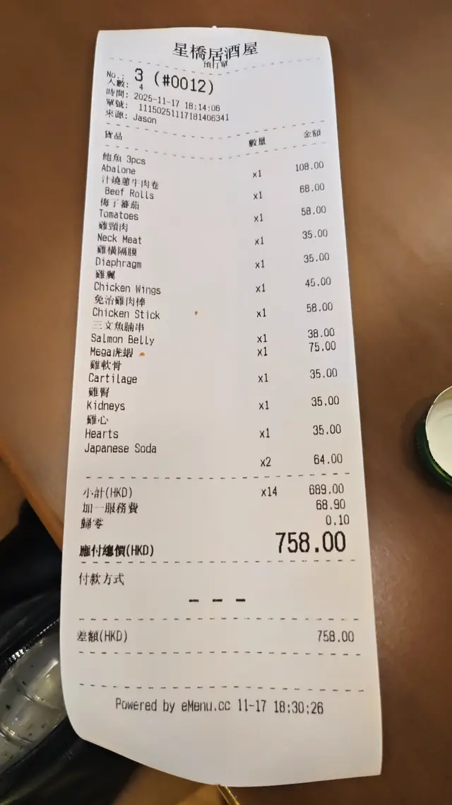星橋居酒屋 (中环) 网上订位享特别优惠并赚Rice Dollars 网址: https://s.openrice.com/QrLS0X9y5W0 地址: 香港中環嘉咸街35-39號嘉豪大廈地舖 电话: +852 26823077
