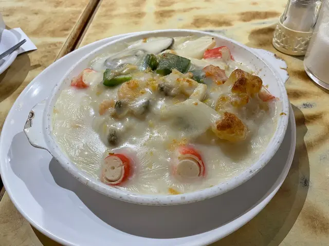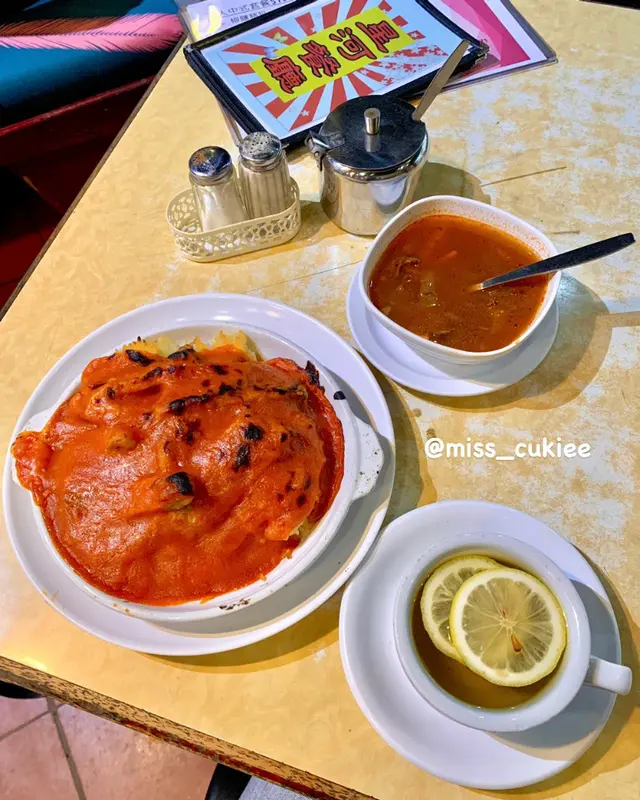 星河餐廳因為有MM加持過黃店又有結業效應佢地5月尾結業難得細佬番左黎就去試下最地道由細食到大既食物我地就係5月頭既平日lunch time一點左右去到都要等廿分鐘先入得星河都係舊式茶餐廳有話都開左三十年入面好迫位唔算多要搭檯佢lunch set就無焗豬既要單點先有因為唔知佢原來有得淨叫焗豬飯所以我地呢個係特餐有湯有野飲既紅湯白湯都係果d野啦等緊既時候已經聽到侍應好大聲講同出面排隊既人話無晒焗豬啦果時都只係一點三十五分左右即係好彩我地算係差唔多最後果幾個兩個焗豬都真係等左三四個字先有條MM條片講既差唔多佢話自己唔落菠羅唔落芝士亦都唔會見到唔開胃既三色豆就只係好純粹既既蕃茄洋蔥豬扒同炒飯望落真係同佢地話最原始既太平館有d似但因為燈光無咁昏暗所以鮮色好多佢地豬扒有切到咬落係好有肉質同好軟淋既個汁比較甜但唔係酸炒飯底整體就真係好食既茶餐廳風味即係唔可以話個個黎到星河都叫焗豬不過至少我地對面搭檯既都係叫呢樣野餐廳仲要點幾鐘就話焗豬賣晒而且果時班今天仲未自我送支咁結業就應該同生意無關既凍飲要加3蚊81蚊茶餐廳黎講就真係貴左d上網睇番先知原來淨焗豬係60蚊咁就合理好多而且食物真係稱之上算好食hi打晒果堆懷舊扒房星河係執左之後幾個月又係原址重開番不過好似已經唔係原本果班人就唔知而家質素變成點樣了…查看更多