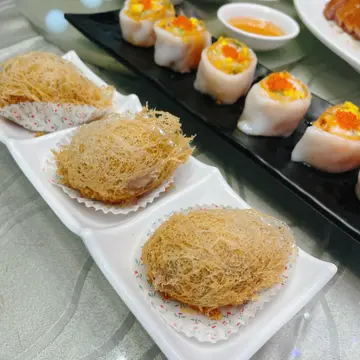 同班同事杀入「星海」搏杀午市点心,12:15冲入场仲有位坐户外露台!🤍 玻璃屋顶透自然光,枱与枱够松动,最正系冇限时压力,倾project吹水都唔使睇钟。透明点心车喺身边穿梭,阿姐手写落单够传统,我哋4人卡位望住开扬街景,即刻卸低朝早啲deadline压力~🙆🏻♂️🙆🏻♂️🙆🏻♂️🙆🏻♂️ 远年陈皮脆皮烧鹅王陈村粉底烧鹅髀斩件上枱仲滴紧油!😍 陈皮香攻鼻,鹅皮脆到「咔滋」声,陈村粉索晒鹅油同秘制酱汁,滑溜中带米香,同事A秒速清底:「呢价格有半只鹅量,抵到喊!」🙆🏻♂️🙆🏻♂️🙆🏻♂️🙆🏻♂️ 蜂巢芋角热辣辣即炸!⚡️外层脆如蜂巢,一咬芋泥涌出嚟~绵密芋香包住笋粒肉馅,油沥得干身,食完指尖零油光,阿姐自豪话:「全手工㗎,晏昼先有!」🙆🏻♂️🙆🏻♂️🙆🏻♂️🙆🏻♂️ 樱花虾蒸萝卜糕突破煎糕框框!✨ 萝卜糕蒸到duang duang感,樱花虾铺到睇唔见白色,入口鲜甜海味爆棚!糕体软滑到筷子夹唔起,要用匙羹「𢳂」,食到萝卜丝清甜无粉感~🙆🏻♂️🙆🏻♂️🙆🏻♂️ 怀旧虾多士厚多士炸成金砖!🍞 面包外脆内软,虾胶混咗芝麻提香,可惜酱汁得喼汁,如果有沙律酱夹就perfect池~🙆🏻♂️🙆🏻♂️🙆🏻♂️🙆🏻♂️ 春风得意肠肠粉界三层派对!🎉 滑肠粉包脆网皮,中心仲有原只爽虾!脆软嫩三重奏,点少少豉油已够鲜,同事B狂赞:「盏鬼过普通炸两!」重点系全程25分钟极速上齐菜!由落单到食饱唔使一粒钟,仲有时间叹多壶菊普~💨 茶芥$10/位合理,睇见晚市招牌白胡椒焗蟹饭海报已心痒,下次要试埋红烧煲仔翅!听讲呢度星级婚宴场地仲有包场服务,过年围炉或者公司event谂得过~…查看更多