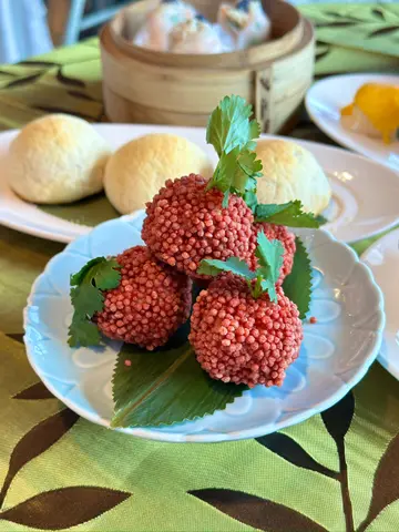 一步餐厅巳经被出面个劲大露台吸引,坐在即同朋友出去打咭,企系露台望向两边维港景色其系写意,服务员仲话呢到晚上有烟花餐仲可以睇到烟花架🥰🥰我们两个最爱香口嘢所以点咗好多香口嘢食😁😁😋😋锦卤云吞薄如蝉翼的云吞皮伴随住蕃茄海鲜酱汁里面有好新鲜嘅鱿鱼、带子同埋虾,好抵食㖞68蚊咋😁到脆卜卜酸酸甜甜好惹味👍 脆皮吉列沙律海皇卷😍 炸到金黄色咬落去好多沙律酱同埋好大条蟹柳喺里面仲有虾 ,直系绝配呀 😁食到停唔到口😅雪山黑毛猪叉烧餐包,轻触即化的酥皮如新雪坍塌,露出蜜糖色的黑豚肉,肉汁渗进面包的滋滋声好有惊喜😍金钩啤梨咸水角压轴登场时,移传统的咸水角被捏成西洋梨造型,炸得通透的脆皮下,咬破的瞬间,滚烫的香菇肉末在口腔回味💯太极鸳鸯饭,厨师用白汁鲜虾与茄汁肉丝勾勒出太极图,两种酱汁层次分明, 个饭底就梗系炒饭底啦😋茄汁好鲜味好好味白汁个虾劲大只,两个味都好好味,呢个一定系推介好耐冇食仲要系好大碟👍👍又点少得甜品韩风柚子蜜饯脆麻花在,糖丝拉成的银河系里,蘸著柚子蜜的酸甜味好清新一d都唔油腻👍👍星。海荟尖沙咀弥敦道100号,The ONE 18楼…查看更多