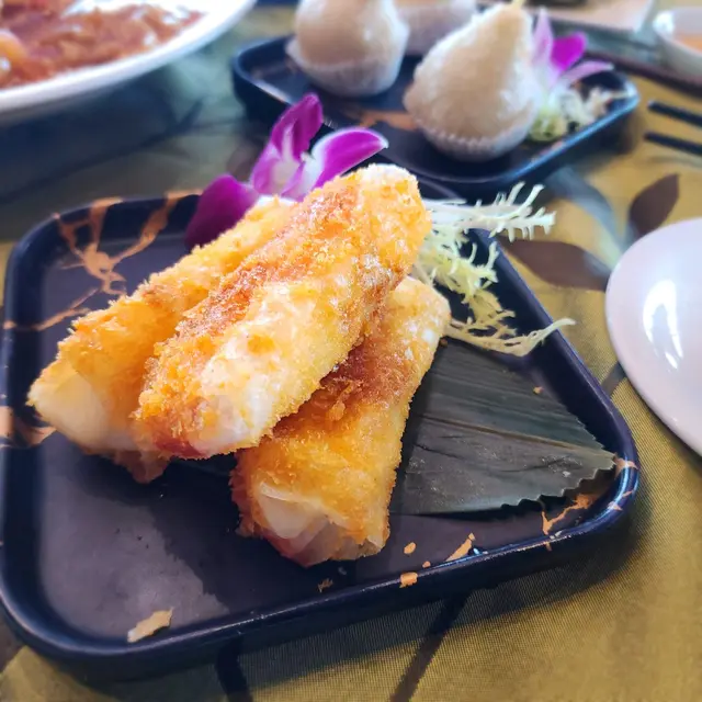 一步餐廳巳經被出面個勁大露台吸引,坐在即同朋友出去打咭,企係露台望向兩邊维港景色其係寫意,服務員仲話呢到晚上有煙花餐仲可以睇到煙花架🥰🥰我們兩個最愛香口嘢所以點咗好多香口嘢食😁😁😋😋錦鹵雲吞薄如蟬翼的雲吞皮伴隨住蕃茄海鮮醬汁裏面有好新鮮嘅魷魚、帶子同埋蝦,好抵食喎68蚊咋😁到脆卜卜酸酸甜甜好惹味👍 脆皮吉列沙律海皇卷😍 炸到金黃色咬落去好多沙律醬同埋好大條蟹柳喺裏面仲有蝦 ,直係絕配呀 😁食到停唔到口😅雪山黑毛豬叉燒餐包,輕觸即化的酥皮如新雪坍塌,露出蜜糖色的黑豚肉,肉汁滲進麵包的滋滋聲好有驚喜😍金鉤啤梨鹹水角壓軸登場時,移傳統的鹹水角被捏成西洋梨造型,炸得通透的脆皮下,咬破的瞬間,滾燙的香菇肉末在口腔回味💯太極鴛鴦飯,廚師用白汁鮮蝦與茄汁肉絲勾勒出太極圖,兩種醬汁層次分明, 個飯底就梗係炒飯底啦😋茄汁好鮮味好好味白汁個蝦勁大隻,兩個味都好好味,呢個一定係推介好耐冇食仲要係好大碟👍👍又點少得甜品韓風柚子蜜餞脆麻花在,糖絲拉成的銀河系裡,蘸著柚子蜜的酸甜味好清新一d都唔油膩👍👍星。海薈尖沙咀彌敦道100號,The ONE 18樓…查看更多