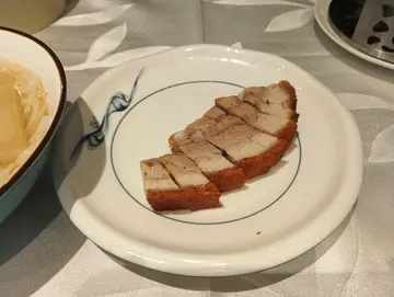 2025/5/15中午烧肉。完全冇烧肉味,皮得个韧虾饺。一般乳鸽。只系得皮稍为好啲,里边啲肉完全冇味同埋韧冇肉汁。蒸鱼云。又咸啲肉又霉萝卜糕。竟然系酸叔(最终都系换咗凤爪)手拉肠粉攞到出嚟𠮶阵时只系和暖,同几经辛苦先至问到佢哋攞酱料(麻酱甜酱),仲要觉得好错愕噉乜要的么。服务态:1.有一张大单嘅个服务员嚟到好大声似乎审犯感问系咪呢个系咪呢个,噉我哋望一望,佢才讲要复述单一次,惊落错。但系最终呢张单都系漏单,三催四催才知漏单。跟住我哋就话要揾返张单落啦,佢话唔好咁烦喇重新落过。2.如上布拉肠粉噉,要问几次先至知道要有酱料配备。2025/5/16之后教天。后续:隔数天另一帮朋友们约同试晚餐,我已经犹豫了。心谂晚餐应该唔会差挂,噉就再试一次晚餐。最后都系败兴而归。1.咕噜肉。只系得卖相玩gimmick,皮酱厚里面肉疑似系无皮烧肉,冇味。2.唔知乜酱龙趸球:鱼得真系几块冇味。3.铁板梅菜扣肉:啲肉得个暖字,完全冇味。梅菜冇梅菜味。块肉韧又唔腍,淋上汁都唔能够增添什么味道4.蓝莓酱汁淮山:一般5.煎藕饼:还可以,莲藕唔多。6.椒盐鱿鱼须:还可7.话梅猪手:都可以8.订枱前已经预留只乳猪,最后竟然完全冇回事。送甜品:番薯糖水尚可,桂花椰汁糕,完全淡茂茂无桂花味又冇椰汁味,全部好似开淡晒嘅将粉雪冻。