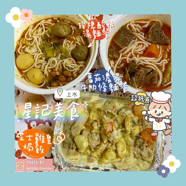 上水抵食外賣店🌟星記美食✨ hkfood.yumyum等级42022-11-02157 浏览 关注 上水抵食外賣店🌟星記美食—————— ʕ•͡ᴥ•ʔ ʕ•ᴥ•ʔ ♥︎ ——————屋企有陣時懶得煮飯就會食外賣🤩住附近咁啱見到呢間上水新開嘅舖頭🫣✨價錢好抵食 就一於買嚟試吓😋🧀芝士雞皇焗飯💲3️⃣5️⃣本身諗住試皇牌焗豬扒飯🐷但係個日已經賣晒 所以就嗌咗呢個~佢哋嘅焗飯全部都係即叫即焗🙌🏻等個陣仲見到佢哋係焗完個飯先放塊芝士上去用火槍燒🔥 芝士味超濃郁🧀啲雞份量都幾多 仲要夠哂滑🐔個焗飯仲係蛋炒飯底🤤👍🏻而且加左白汁都唔會好漏😆🌶️招牌酸辣湯麵餐💲2️⃣4️⃣老闆話佢對佢哋啲湯底都幾有信心🤫所以我哋都嗌咗呢個招牌酸辣湯麵佢有啲酸菜.花生.芫荽做配料~食落冇乜味精 唔同出面嗰啲 食完會好想飲水👍🏻辣味都岩岩好 唔會係死辣個種😆仲加左墨丸同牛丸兩個餸 夠哂豐富✨🍅蕃茄濃湯牛肋條麵餐💲2️⃣5️⃣有冇人都係好鍾意蕃茄湯🙋🏻♀️佢呢個蕃茄湯好濃 啲麵仲要索晒啲湯😍牛肋條炆得都夠淋 仲要大大舊同夠入味😋超級建議✨住附近嘅街坊要試下呢間平民抵食外賣店🤩—————— ʕ•͡ᴥ•ʔ ʕ•ᴥ•ʔ ♥︎ ——————📍星記美食 上水天平路48號天平商埸地下天平街市3號舖…查看更多+ 2以上食记乃用户个人意见 , 并不代表OpenRice之观点。赞好分享上水抵食外賣店🌟星記美食✨ 星記美食 https://s.openrice.com/QrLT02J1600检举 张贴 评分4味道4环境5服务4卫生5抵食用餐途径堂食