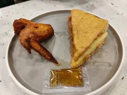 两点后的下午茶,不过不失。鸡翅是脆,多士够脆又够味道。下午茶黎讲价钱合适中。餐牌的下午茶西式为主,都系马来星马风味。下午茶多数在30-40左右期间的价钱,份量当然不会是太贵,加埋杯热奶茶,(不锈钢杯),都几大杯,不过我话自己落糖,呢杯奶茶就好似同麦当劳一样。萝卜糕有新意,但如果葱再熟啲,芽菜似乎无味道。萝卜糕就太熟,相对黎讲入味可以,不过葱同芽菜少少失望。环境在餐厅黎讲算可以。侍应接待我哋是阿姐,下午茶时段在呢区不算太旺。有求必应还可以。