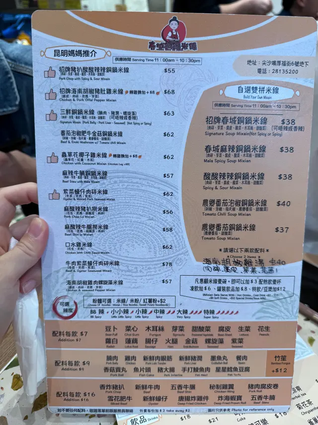 香港人真係好中意食米線‼️其實除咗譚仔同雲桂香依種連鎖餐廳之外,香港地仲有好多用心煮食嘅米線鋪頭,「春城」就係其中一間🥹🥹【招牌豬扒酸酸辣辣銅鍋米線】💰55有別於其他鋪頭,依款米線會用特別嘅銅鍋器皿裝住🥣 湯料好豐富:包括肉碎、芽菜、腐皮、酸菜、甜酸菜、木耳絲😋 豬扒會分別用另一個盤仔上,唔怕浸到淋晒👍🏻【蟲草花椰子雞米線】💰62椰子湯味好重🥥 嗌咗小辣,飲落有啲似喇沙湯底(比較清,唔會有蝦醬鹹味)😋 雞件依舊好滑👍🏻 加8蚊可以轉做雞脾👀 配料有大量蟲草花、紅棗、木耳,個人私心推介💕💕【炸脆脆蝦膠豆卜】💰25/3粒喺其他餐廳無食過嘅小食👀 豆卜外皮炸到金黃酥脆,釀喺入面嘅蝦膠彈牙👍🏻 配泰式辣醬食好夾🤓【爆漿紅糖糍粑】💰20/3粒物如其名、絕對爆漿‼️ 糍粑口感Q彈,紅糖釀喺糯米糰入面係我比較喜愛嘅食法,可以確保包舊糍粑都有足夠嘅甜味同熱度💕幫襯過旺角店同尖沙咀厚福街店,食物質素同樣高質,出品有保證,價錢經濟又實惠👍🏻…查看更多