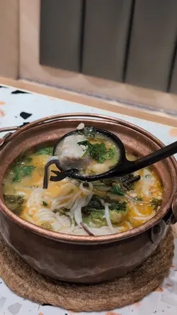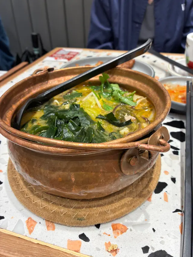 餐廳:春城銅鍋米線地點:旺角砵蘭街菜式:雲南米線餐牌:醒胃酸菜飯、即叫即滾湯飯、昆明媽媽推介、自選雙拼米線、小食推介、飲品。招牌春城銅鍋米線 $37成個銅鍋熱辣辣上枱。米線滑溜,配有肉碎,芽菜,腐皮,酸菜,木耳絲同甜酸菜,材料豐富有口感。湯底可選辣度,我叫左唔辣,都好夠味。農鄉番茄銅鍋米線 $36農鄉番茄銅鍋米線就有好香甜番茄味,仲食到好多甜酸菜,芫荽同生菜。都可以叫辣呀。自選左以下材料:新鮮牛肉 $16新鮮牛肉份量唔少,好嫩。五香牛展 $16五香牛展有好幾塊,唔錯。新鮮蠔仔 $16新鮮蠔仔有好多隻,超滑唔腥。五香牛腩 $16五香牛腩有好幾件,算淋而且入味。叫左兩款小食。炸脆脆蝦膠豆卜 $25呢個價錢係三粒,可以叫五粒。炸脆脆蝦膠豆卜炸得外皮香脆而入面蝦膠好彈牙又鮮味,配甜酸醬非常開胃,墊有生菜解膩。爆漿紅糖糍粑 $20呢個價錢都係三粒,可以叫五粒。爆漿紅糖糍粑熱辣辣上枱,皮好薄脆,而入面果然有爆漿紅糖,味道甜甜地唔會太甜,口感外脆內軟糯,係一道唔錯既甜品。凍檸檬可樂 加$12凍檸檬七喜 加$12罐裝汽水另配大大杯冰,仲有四片檸檬,解渴夠凍。今餐食到飽飽,銅鍋米線果然唔錯,小食都幾好,主食價錢好平。餐廳裝修光猛,平日午市滿座。…查看更多
