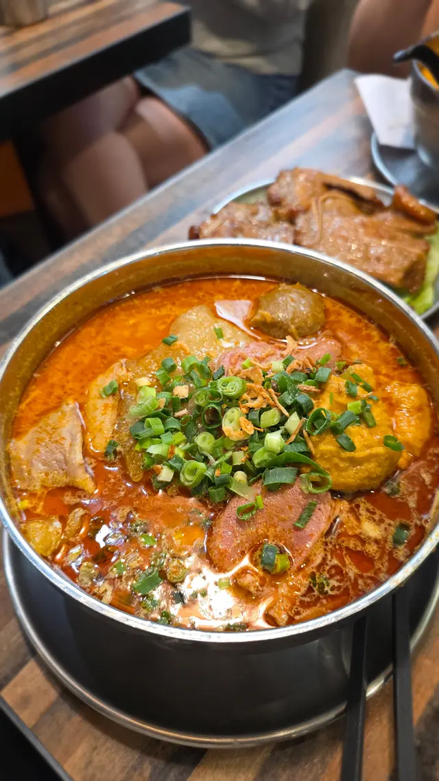 朋友好耐之前介紹過,特別推薦呢度既叻沙。今日剛好經過,終於有機會一試,除左叻沙,再點左一碗生熟牛肉湯河。先講講叻沙,朋友推薦果然值得一試,叻沙湯底非常濃郁,少少辣辣地,非常惹味,而魚片頭都好爽口彈牙,滿意。生熟牛肉湯河食到一半先記得影,湯底唔錯,生牛肉另外一碟上,如果喜歡將牛肉浸得熟啲既朋友要快手啲落~生牛肉浸一浸肉質依然嫩滑,不過熟牛肉相對有啲啲乾。湯河上菜時不會有青檸辣椒跟住上,但有需要可以問侍應攞,侍應態度都親切有禮貌~查看更多