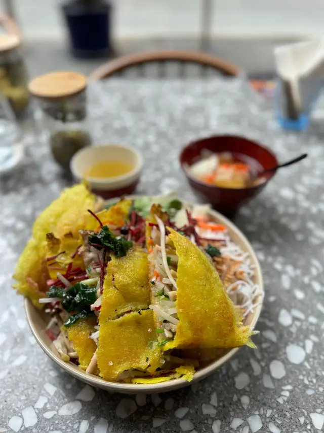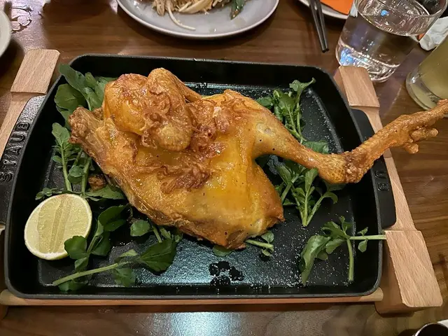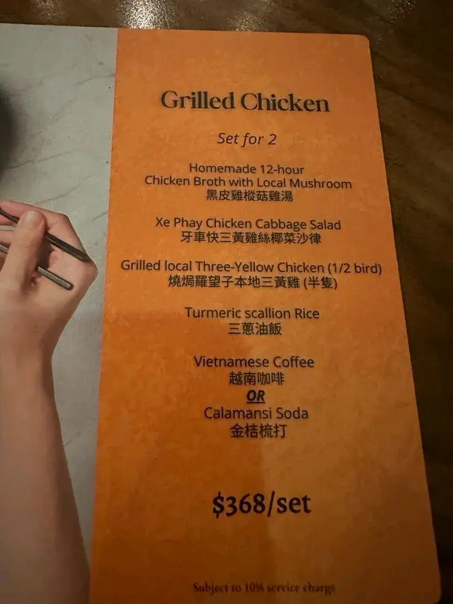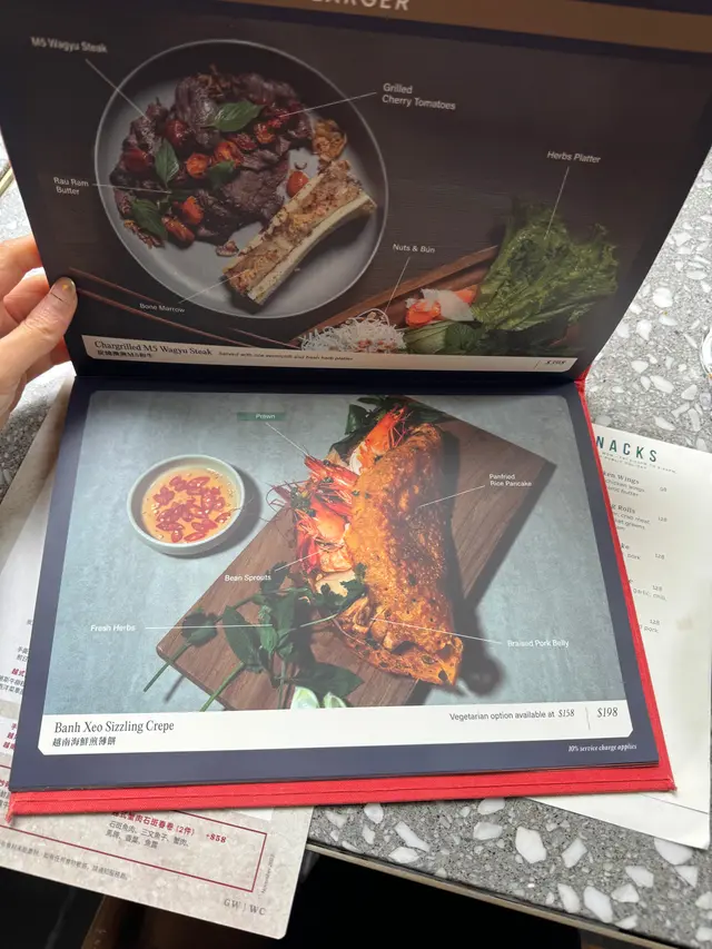 招牌三黃雞河 $178唔明呢個點解列為招牌菜,非常普通。有啲雞絲,湯底就普通清雞湯嘅味道。有一pat 紅色嘅醬,溝開佢應該係淡淡嘅茄醬味道,但係加落又冇乜特別,冇話提升左咩層次。整體就係一個普通到不得了嘅雞絲河,仲收咁貴,唔抵。👌🏼椰奶海膽煎餅 $178相片同真實樣子好唔同!Menu相片嘅海膽係橙色好靚嘅,但來到係啡色熟咗嘅?唔係平時預期中生海膽嗰種味道。有一啲白色嘅椰漿喺上邊,再加上味道唔係好突出嘅海膽,餅底就脆脆地。食落去,味道都有新鮮感嘅,但又未話好impress 好驚喜。貪新鮮嘅朋友可以試一試嘅。環境 : ★★★★☆食物: ★★★☆☆ 推介度: ★★★☆☆ …查看更多