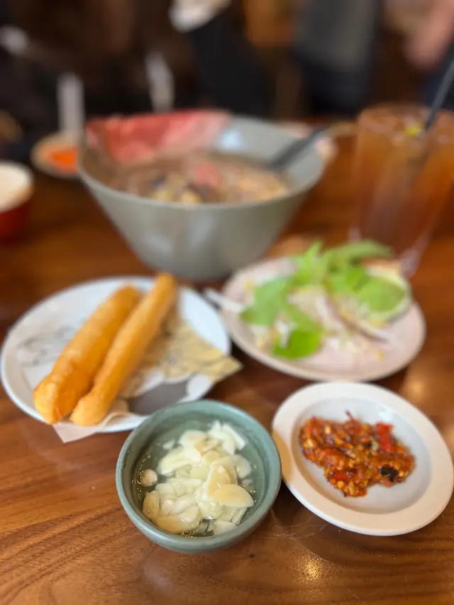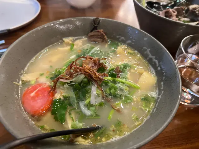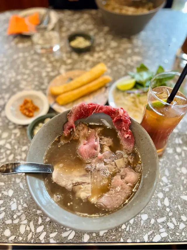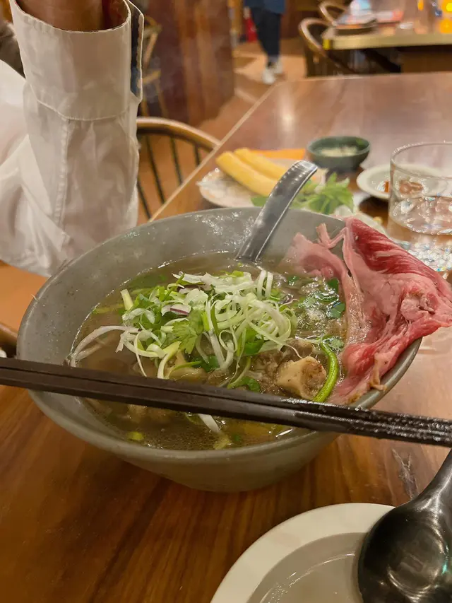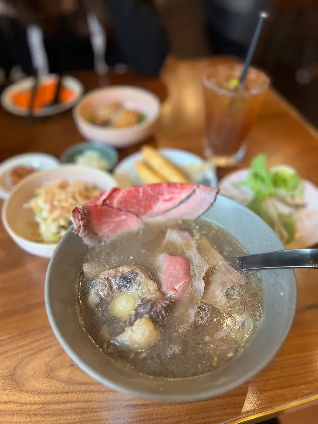 餐廳環境幾型格。座位闊落。👌🏼招牌牛河 湯底唔係走清甜路線,味道比較濃郁,牛味重。入邊有唔同嘅材料,牛肉都算嫩滑,另外有啲牛腱之類就硬硬地,味道正常。