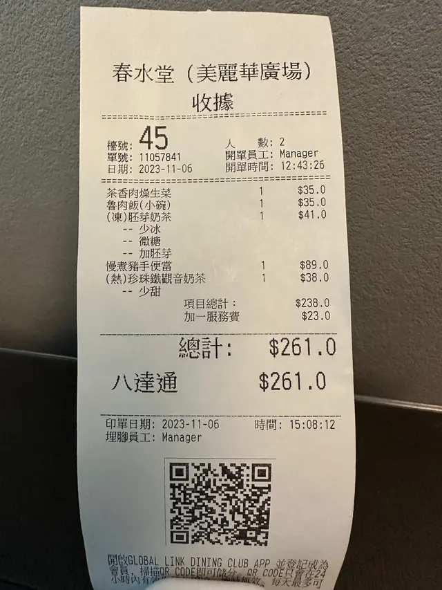 近依8年10年冇去台灣旅行了,以前去台灣旅行都會去春水堂打下卡,好舒服d 食飯好有特色(但其實都唔記得食過d 乜😅😂😂)。幾個人啱啱去美麗華買d 野,又六點幾順便食埋dinner . 看看menu d 野食都好多選擇,小食樣樣幾廿蚊,是但叫左一堆小食:麻辣涼拌牛筋、金沙芋泥丸、慢煮豬手、滷香大腸、招牌豆干、茶香肉燥生菜、龍丼四神湯, 咁樣樣都易入口唔差嘅….反而飲品仲貴dd 😂 但都ok 唔差… 食物豬手和牛筋都可以推介… …查看更多