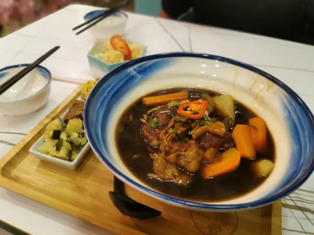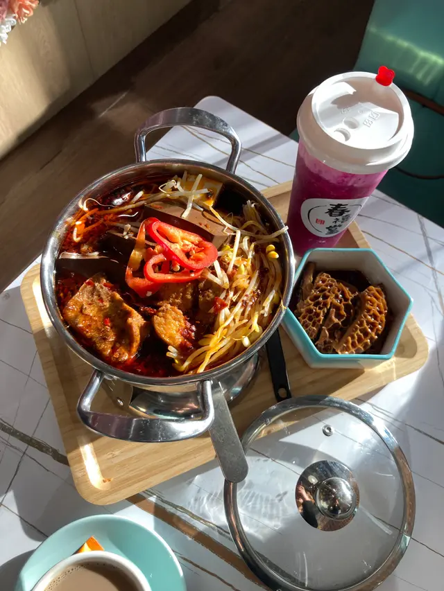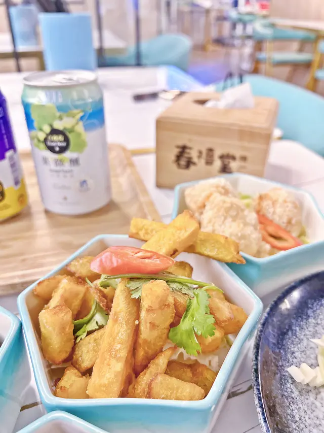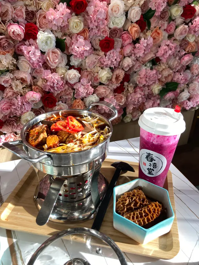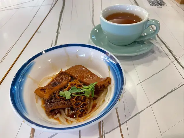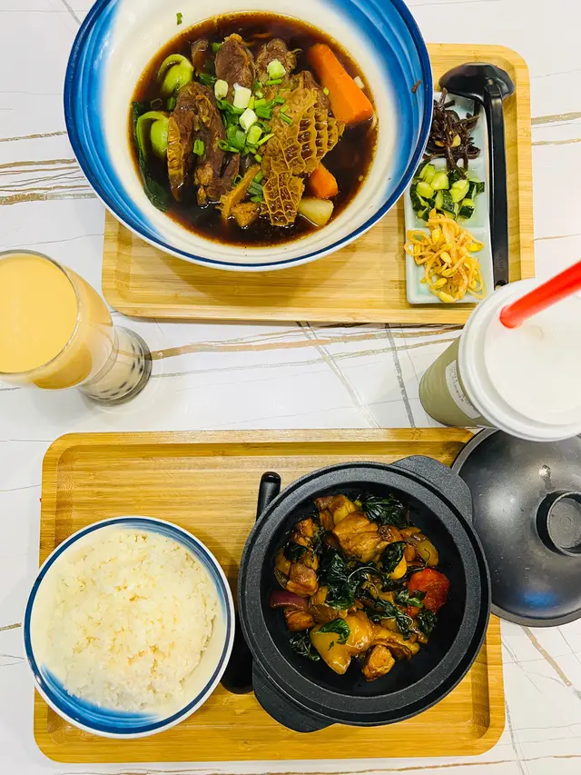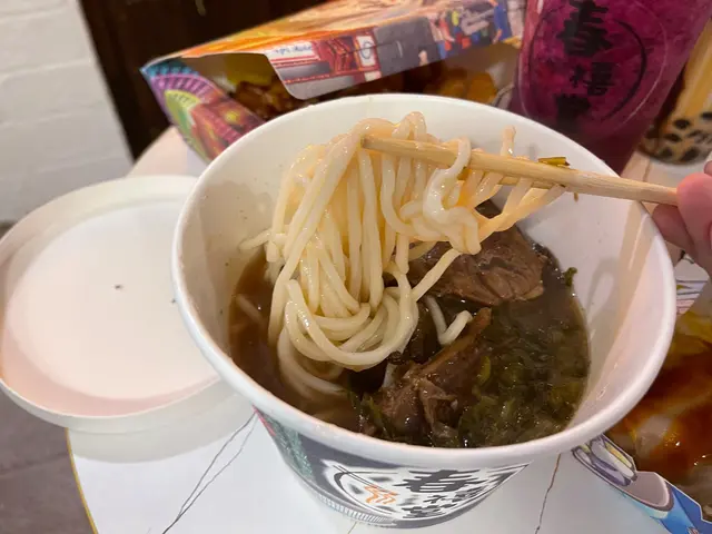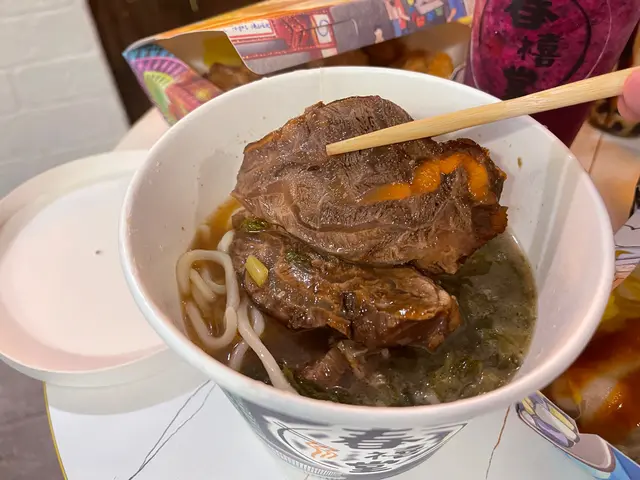 喺油麻地攞完貨,就見到地鐵站附近有間好耀眼嘅小店「春禧堂台灣料理餐廳PLUS」。佢簡直係漆黑中嘅螢火蟲💡,因為喺鬧市中心無啦啦有個半開放式嘅打卡位置。餐廳主力做外賣生意🥡,不過同時喺隔離舖設有一個堂食區。呢度裝修非常有心思,有一大幅花花牆🌸同埋大大個月亮座地燈🌙。除咗環境靚之外,外賣餐盒更加係令人眼前一亮,🌈色彩繽紛嘅圖案畫上台灣地標同美食,真心靚到唔捨得扔。食物即叫即整,菜式選擇都唔少,價錢合理。紅燒腱心牛肉麵($48),唔好睇個碗好似唔大,但其實份量都幾多。🍖牛肉麵湯底係純牛骨湯,味道濃郁,唔太鹹,帶少少藥材味,而且仲有酸菜作伴。🐮牛腱肉有三大嚿,筋肉比例得宜,食落有彈性。雖然湯麵無分湯上,但台灣麵麵質有一定韌度,拎到返去都無發脹🍜。鹽酥雞粒滷肉飯($45),呢個飯可以一次過滿足兩個願望,試晒鹽酥雞同滷肉飯。🐔鹽酥雞炸得幾香口,但細粒咗啲;滷肉飯好邪惡,肥膏炆至入口即溶,配飯食啱啱好🍚。滷水雞翼($30/5隻),🍗雞翼滷得好入味,唔係得表面層皮上咗色。滷水汁鹹香味濃,雞翼肉質軟嫩,而且無諗過連墊喺底嘅椰菜,索咗滷水汁都幾好食。經典蚵仔煎($38),🦪蚵仔煎大大份,用料唔孤寒,有好多隻蠔,而且亦唔腥,配上海山甜辣醬食,口味正宗。但呢客蚵仔煎木薯粉比例高,食落比較黏身,略嫌唔夠香脆。飲品方面🥤,我哋要咗芝士奶蓋火龍果茶($38)同黑糖珍珠鮮奶($32),兩杯各有特色,口味大不同。紫紅色嘅火龍果茶用上新鮮果肉攪拌而成,無落太多糖,較清淡,健康之選💜。黑糖珍珠鮮奶固定甜度,甜得嚟令人好上癮,而且奶香細滑,珍珠Q彈🥛。總括嚟講,呢間台式小店各方面都OK啵👌,食物水準平均,菜式全部都係台式嘢,再加埋整個店舖設計,真係令人好想去台灣旅行呀🇹🇼。…查看更多
