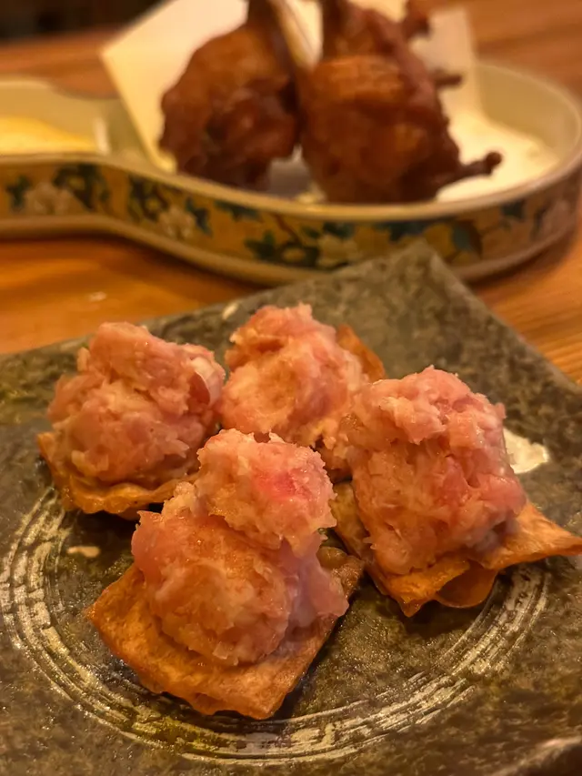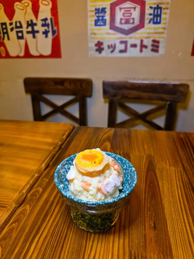 今次來到灣仔居酒屋《昭和食堂》,遠遠已被門口的燈籠🏮和日式設計吸引左。行入居洒屋彷如入進昭和時代,有日本屋簷設計,懷舊佈置和精品也好有心思,營造懷舊日和氣氛😊▫️流心蝦薯仔沙律 $68 (半熟玉子海老ポテトサラダ)流心雞蛋🥚外層是炸過,薯仔加上蛋黃醬好滑溜,口感軟綿綿,內還有粒粒鮮蝦肉🦐,好有層次感▫️炸海鰻魚骨 $68 (穴子の煎餅)第一次食炸海鰻魚骨,原來炸之後作送酒🍺小食係好夾。魚骨調味咗炸至脆卜卜,長長地非常有口感▫️酒盜炒山藥 $58 (山芋の酒盗炒め )用日本酒盜的鹽辛調味,炒過的山藥非常爽口,另人無法抗拒一口接一口😋好開胃作前菜小食一流👍▫️魷魚明太子卷 $88 (イカ明太巻き)鮮甜爽滑魷魚卷入紫蘇葉,明太子和帶有調味過酸甜的青瓜絲。第一口已愛上,味道鹹中帶酸又有青瓜的味道,十分清新,大家一齊講好味👍😋▫️昭和海鮮卷 $228 (刺身太卷)太卷有超豐富餡料, 海膽,三文魚籽,吞拿魚,三文魚,吞拿魚蓉。色彩豐富,好有層次的鮮味。▫️白繕串燒🍢 $68/串(うなぎ )白膳配上香濃燒汁,食落完全冇腥味,肉質彈牙。炭燒過的燒汁融入白繕肉內,惹味無限😋▫️雞肉丸🍢 $32/串 (つくね)雞肉丸肉質實而爽彈,雞絞肉加入味噌,醬油製作成。上層有甜甜的燒汁特別好味。▫️鰈魚邊壽司 $50/件 (えんがわ)火炙過鰈魚邊,肉質鮮美,油脂更均勻地融入壽司飯內。再配搭紫菜包住食,味道更出色, 雙重享受更昇華✨️~~~~¤~~~¤~~~¤~~~¤~~~¤~~~¤~~~用餐氣氛好好,客人也好享受。店員服務有禮,用心講解食法,食材新鮮,製作精緻。最欣賞係店舖揾左好多懷舊日本精品和掛牆廣告,真係一路食一路欣賞👍🥰昭和食堂 📍灣仔謝斐道391-407號新時代中心地 下A號舖#showashokudo #昭和食堂 #銅鑼灣 #居酒屋 #銅鑼灣美食 #灣仔美食 #香港美食…查看更多
