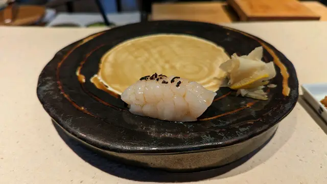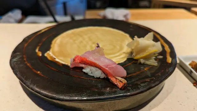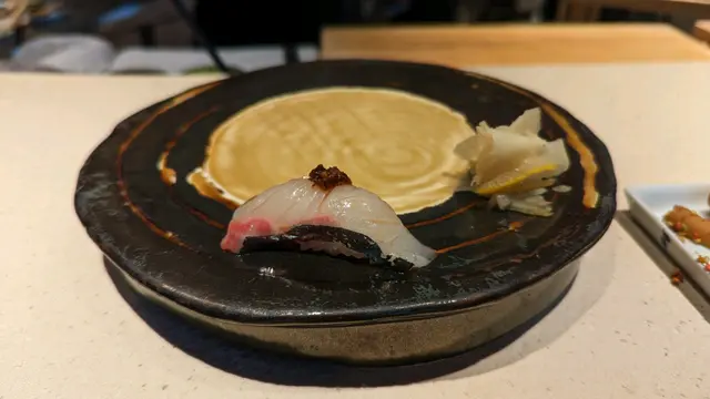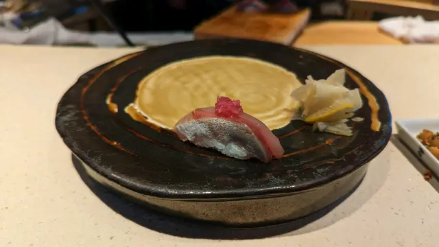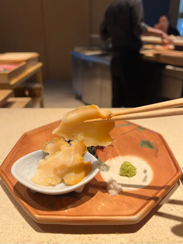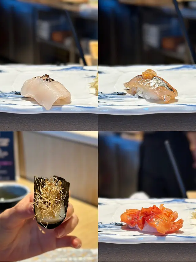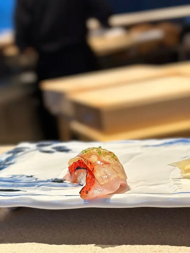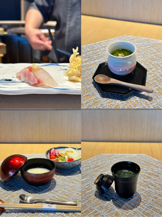 🤗 今日相約 “食家讀者” 交換情報, 選址 “旭”, 食壽司廚師發板.🏘️ 餐廳位於中上環L.Place 高層, 接待處以圓形線條設計, 分隔背後嘅用餐區, 十個讚, 壽司區設一張十二人橢圓形吧枱, 另外兩個鐵板燒用餐區.🥢 今日點咗十二貫壽司套餐, $580+10%, 包括前菜, 沙律, 茶碗蒸, 十二貫壽司, 卷物, 湯, 甜品.櫻煮八爪魚沙律茶碗蒸羽太帆立貝金目鯛深海池魚甜蝦紋甲魷魚飛魚喜之次赤身中拖羅右口魚邊赤海膽吞拿魚手卷玉子燒魚湯綠茶蛋糕🦑 櫻煮八爪魚. 送嘅, 靭韌哋.🍀 沙律. 冇乜特別.🍥 茶碗蒸. 賣相有睇頭, 又夠熱, 過關!🍣 羽太, 又名 “黑瓜子”, 北海道, 配沖繩海鹽, 青檸. 魚味不俗, 而且越嚼越甜.🐚 帆立貝, 又名扇貝, 北海道, 配昆布鹽. 昆布鹽帶領味道, 帆立貝肉質相對平淡.🍣 金目鯛, 配九州柑橘啫喱. 我唔食紫蘇葉, 竟然換上金箔, 賣相加分, 金橘啫喱搶味, 結合金目鯛嘅油份, 有趣.🍣 深海池魚, 配鯊魚軟骨梅醬. 我鍾意紅潤嘅色澤, 可能魚料太簿, 錯失咗實淨嘅口感, 味道唔算太梅.🦐 甜蝦, 配鹽𣚭. 師傅介紹甜蝦尺碼係 3L, 我又唔覺得特別大隻喎, 食落少少甘, 帶杏脯味.🦑 紋甲魷魚, 配七味粉. 據師傅介紹, 此前嘅壽司用白醋米, 由呢貫開始轉赤醋米. 講番紋甲魷魚, 口感真係唔似魷魚.🍣 飛魚, 配三升漬, 芽蔥. 魚料太簿了, 口感欠奉.🍣 喜之次, 炙燒, 配日式脆脆醬. 炙燒嘅喜之次逼出油份, 配合惹味嘅脆脆醬, 掂!🍣 赤身, 配日式芥辣籽. 芥辣冇搶味, 赤身俾到金屬味, 有趣嘅搭配.🍣 中拖羅, 配山葵莖. 拖羅嘅肥美, 又保留到醬油嘅甘香, 掂!🍣 右口魚邊, 配炸京蔥絲. 蔥香, 紫菜, 魚油, 完美結合, 攪掂!🐚 赤海膽, 配米餅, 淡雪鹽. 海膽忌廉口感異常結實, 唔用紫菜, 換成脆口嘅米餅, 效果頗有新鮮感.🍙 吞拿魚手卷, 配櫻花蝦, 天婦羅碎. 吞拿魚蓉夠唒香, 不俗!🍮 玉子燒. 據師傅介紹, 用蘭王蛋, 蝦肉, 低溫煮. 口感少似芝士蛋糕, 一點點橙味.🥣 魚湯. 極重嘅魚味, 交足功課.🍰 綠茶蛋糕, 配紅豆忌廉. 蛋糕軟熟, 完美結束!🤗 總結: 餐廳樓面設計獨特, 空間感十足, 值得再讚. 師傅詳細介紹每款壽司嘅魚料, 出產地, 同埋 調味. 敗筆係: 坐滿人嘅時候好嘈, 聽唔到師傅講嘢. 機械式服務, 合格但欠溫度. 壽司魚料偏薄, 口感差少少, 每貫都配一款調味, 賣相就係 “長方加一點”, 頗有新意, 性價比有吸引力.…查看更多