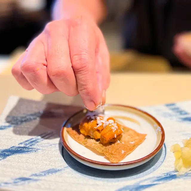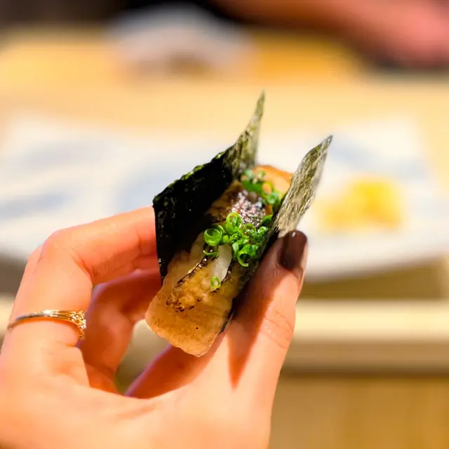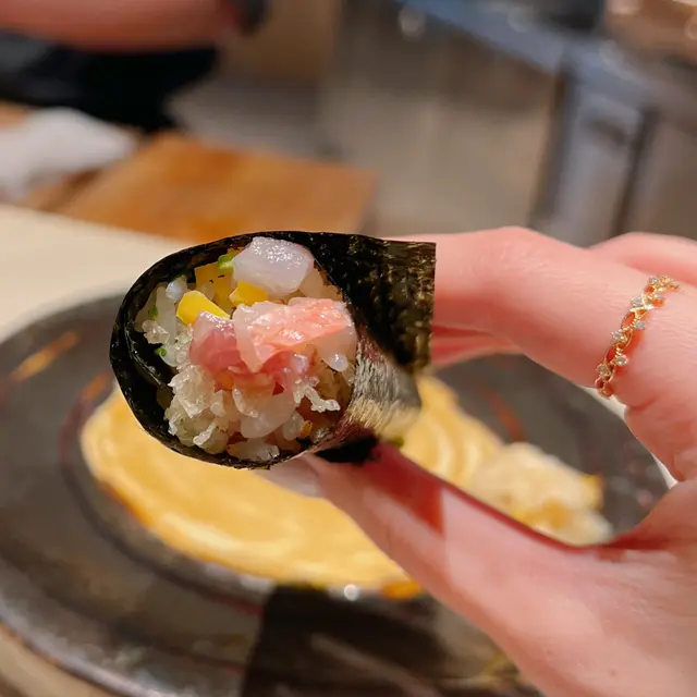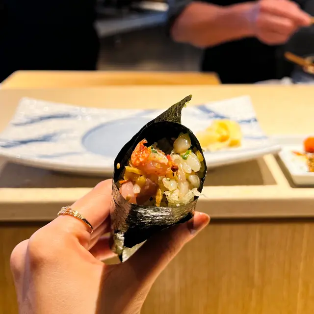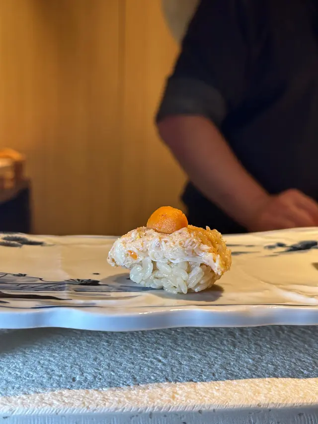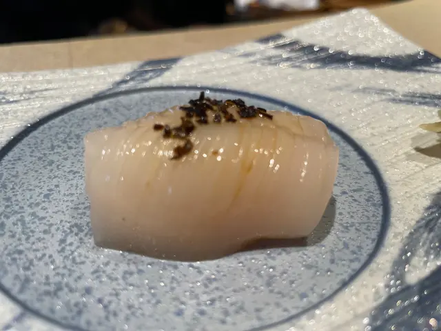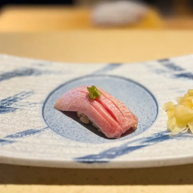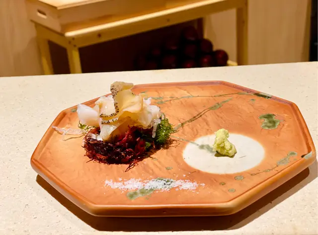 🤗 今日相約 “食家讀者” 交換情報, 選址 “旭”, 食壽司廚師發板.🏘️ 餐廳位於中上環L.Place 高層, 接待處以圓形線條設計, 分隔背後嘅用餐區, 十個讚, 壽司區設一張十二人橢圓形吧枱, 另外兩個鐵板燒用餐區.🥢 今日點咗十二貫壽司套餐, $580+10%, 包括前菜, 沙律, 茶碗蒸, 十二貫壽司, 卷物, 湯, 甜品.櫻煮八爪魚沙律茶碗蒸羽太帆立貝金目鯛深海池魚甜蝦紋甲魷魚飛魚喜之次赤身中拖羅右口魚邊赤海膽吞拿魚手卷玉子燒魚湯綠茶蛋糕🦑 櫻煮八爪魚. 送嘅, 靭韌哋.🍀 沙律. 冇乜特別.🍥 茶碗蒸. 賣相有睇頭, 又夠熱, 過關!🍣 羽太, 又名 “黑瓜子”, 北海道, 配沖繩海鹽, 青檸. 魚味不俗, 而且越嚼越甜.🐚 帆立貝, 又名扇貝, 北海道, 配昆布鹽. 昆布鹽帶領味道, 帆立貝肉質相對平淡.🍣 金目鯛, 配九州柑橘啫喱. 我唔食紫蘇葉, 竟然換上金箔, 賣相加分, 金橘啫喱搶味, 結合金目鯛嘅油份, 有趣.🍣 深海池魚, 配鯊魚軟骨梅醬. 我鍾意紅潤嘅色澤, 可能魚料太簿, 錯失咗實淨嘅口感, 味道唔算太梅.🦐 甜蝦, 配鹽𣚭. 師傅介紹甜蝦尺碼係 3L, 我又唔覺得特別大隻喎, 食落少少甘, 帶杏脯味.🦑 紋甲魷魚, 配七味粉. 據師傅介紹, 此前嘅壽司用白醋米, 由呢貫開始轉赤醋米. 講番紋甲魷魚, 口感真係唔似魷魚.🍣 飛魚, 配三升漬, 芽蔥. 魚料太簿了, 口感欠奉.🍣 喜之次, 炙燒, 配日式脆脆醬. 炙燒嘅喜之次逼出油份, 配合惹味嘅脆脆醬, 掂!🍣 赤身, 配日式芥辣籽. 芥辣冇搶味, 赤身俾到金屬味, 有趣嘅搭配.🍣 中拖羅, 配山葵莖. 拖羅嘅肥美, 又保留到醬油嘅甘香, 掂!🍣 右口魚邊, 配炸京蔥絲. 蔥香, 紫菜, 魚油, 完美結合, 攪掂!🐚 赤海膽, 配米餅, 淡雪鹽. 海膽忌廉口感異常結實, 唔用紫菜, 換成脆口嘅米餅, 效果頗有新鮮感.🍙 吞拿魚手卷, 配櫻花蝦, 天婦羅碎. 吞拿魚蓉夠唒香, 不俗!🍮 玉子燒. 據師傅介紹, 用蘭王蛋, 蝦肉, 低溫煮. 口感少似芝士蛋糕, 一點點橙味.🥣 魚湯. 極重嘅魚味, 交足功課.🍰 綠茶蛋糕, 配紅豆忌廉. 蛋糕軟熟, 完美結束!🤗 總結: 餐廳樓面設計獨特, 空間感十足, 值得再讚. 師傅詳細介紹每款壽司嘅魚料, 出產地, 同埋 調味. 敗筆係: 坐滿人嘅時候好嘈, 聽唔到師傅講嘢. 機械式服務, 合格但欠溫度. 壽司魚料偏薄, 口感差少少, 每貫都配一款調味, 賣相就係 “長方加一點”, 頗有新意, 性價比有吸引力.…查看更多