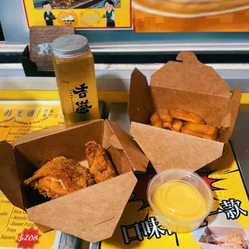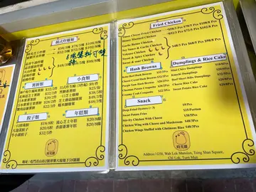 屯门置乐有间外卖炸鸡店💛时光鸡💛可惜嘅系佢哋7月18号就要结业喇😢除咗炸鸡 仲有好多你估唔到嘅小食 最出名当然系时光芝士炸鸡 不过当日我去到咁啱卖哂 可惜😢-🍗时光一人餐 $58包括炸鸡x2 小食x1 饮品x1-1️⃣🧈蒜香牛油炸鸡(两件)炸鸡一大一细 鸡肉几嫩滑 调味都好足😋另外有兜蒜香牛油酱可以蘸嚟食🧄🧈 蒜蓉同牛油本身都系比较浓味嘅食材 所以个酱闻落有啲攻鼻🤧不过同埋炸鸡一齐食 味道即刻balance返🤪-2️⃣🍠黑糖番薯条加咗黑糖嘅缘故 番薯本身又甜 所以番薯条味道偏甜😌有啲仲见到连埋皮架-3️⃣🍑白桃鸟龙冷泡茶(+$10)冷泡茶分别有白桃乌龙 茉莉绿茶 同桂花乌龙 一开始饮白桃味比较淡 乌龙茶味都唔系好出🤔但系饮咗一半之后 白桃同乌龙味逐渐变得强烈 绝对系解渴之选 而且个樽好靓啊 我又储多个喺屋企喇🤣-💜日本紫薯薯饼 $20/2件呢个非常推介🤩炸浆唔会好厚 所以食落都好脆口😚紫薯馅好多好满足 唔知个馅系咪仲加咗紫心番薯 因为既有紫薯独特嘅微酸 又有番薯嘅甜😛-🥟牛小排饺子 $32/5件炸得好香好脆 只只都胀卜卜咁😆牛小排馅味道好浓 好有肉味😋-隔离嘅格仔舖都系属于时光鸡的 同样都系7月18号结业😢结业后会以网店形式继续营运 佢哋都有卖大大小小嘅精品 嚟到买完鸡不妨去支持下💛…查看更多
