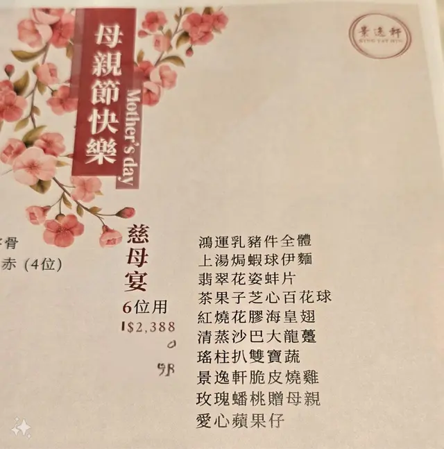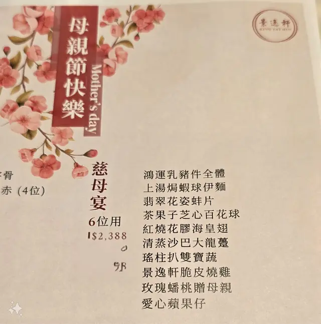 酒樓sale家中爸爸母親節餐 二千幾蚊個六人餐 食到一肚氣
