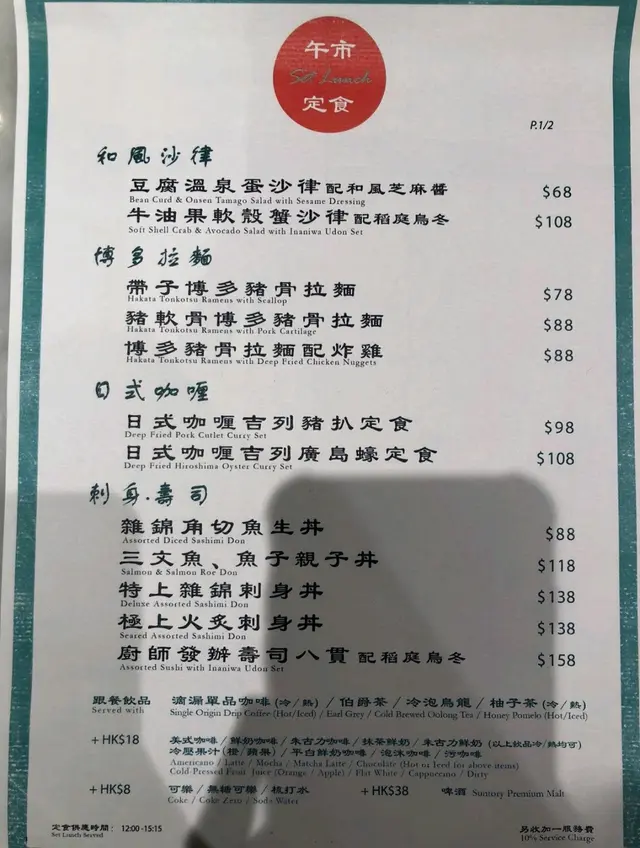 5個人星期六出黎食個lunch,想係佐敦搵間坐得舒服又性價比高既餐廳真係唔容易,朋友介紹黎呢間日式餐廳試下,話一來menu多款式,仲有咖啡嘆,價錢抵,黎到試過果然無講錯!環境寬敞,枱與枱之間唔會迫,地方乾淨,侍應都好nice同有禮~ lunch menu都有好多野揀,5個人每人叫左個定食