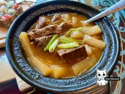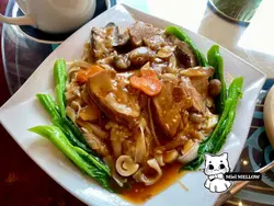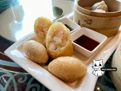 I initially planned to have an early lunch here before going to Disney, trying some of their cute Dim Sum. However, I was intrigued by two items on their menu at at their entrance and I decided to give it a try instead.The first dish though was a miss for me. Appearance wise, it really looks nothing close to the menu. I understand appearances aren't everything but it really the vegetable they put on the bottom kind of made it look even more worse. They could have just added a small edible flower or petals instead.The taste for this one was also not too impressive as it was a bit too oily even after taking into account it was wok fried. The next dish totally turned this review into a great one. Actually the tables next to me all ordered this one after seeing it.Besides being aesthetically pleasing by using the stand and also the dry ice effect, the flavors were spot on. This was actually not oily (much to my surprise). The crunch outside, the chewy lychee and tender pork made an interesting texture combination. The tartness of the sauce took into account that of the sweetness of the whole lychee wrapping the pork and created an excellent balance of savory, sweetness and tartness. Overall an excellent dish and if it weren't for the first dish(flavors I would say 3 stars), the flavors of this review would have been 5 stars(so overall 4 stars). If I need to break down the value of these 2 dishes, the wok fried shrimp only 2 stars but the lychee deep fried pork is worth 4 or even 5 stars.…Read More