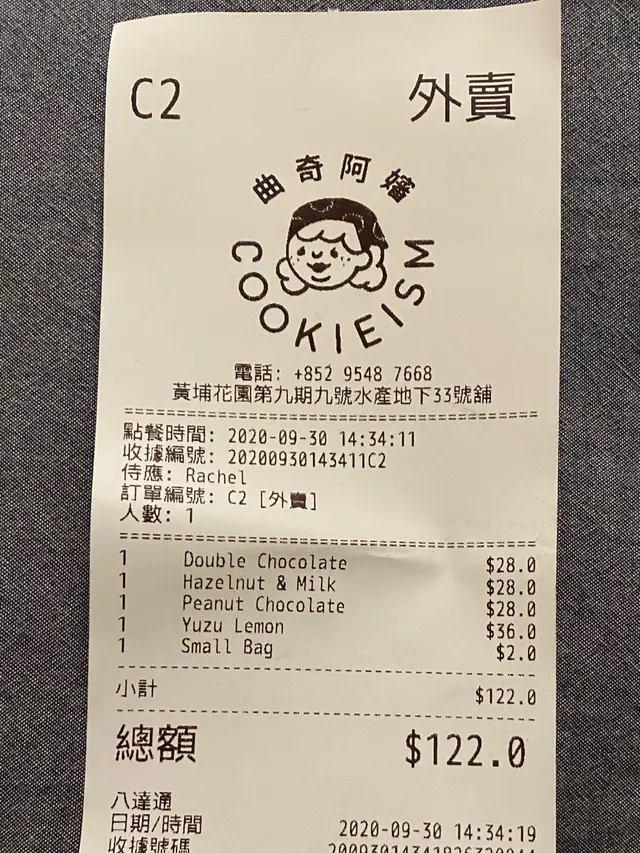 同事知道我係餓底,有日買左曲奇阿嬸擺喺位等我第二日返去食,公司同事真係好有愛喔~今次試左三款口味:Double Chocolate, Mocha Bianco & Peanut Chocolate曲奇質地好好,咬落外面脆脆地 而入面好鬆軟~睇落簡簡單單嘅Double Chocolate都大有來頭,入而嘅朱古力係用法國老牌子Valrhona,朱古力控嘅我一定會試吖~個味同bakehouse曲奇有啲似,幾濃朱古力味,但又唔會好膩!而花生朱古力仲有非常多花生 食落啖啖都有花生味,好鬼香口,而入面嘅粗粒花生加埋朱古力粒令成塊口感非常豐富,可能花生都帶少少油,同埋入面重有花生醬,呢款食落會比其他兩隻更鬆化!最後嘅Mocha Bianco 淡淡嘅綠茶味 唔係濃到苦果隻綠味,普通人都接受到嘅茶味,綠茶鐵粉可能會覺得口淡淡唔夠做 ,而我食完會有少少綠茶餘韻係到,茶味清新!整體呢間小店嘅曲奇非常推介,雖然主打得6款,不過每一款都用高級嘅材料,唔會隔夜又無防腐劑,呢個價錢真係非常抵買!佢地嘅曲奇餅可以食多兩塊都唔會有膩嘅感覺 同埋相對其他大牌無咁油,相個佢地嘅曲奇擺焗爐應該更正,下次再回購買埋其他味一定唔可以偷懶😊…查看更多