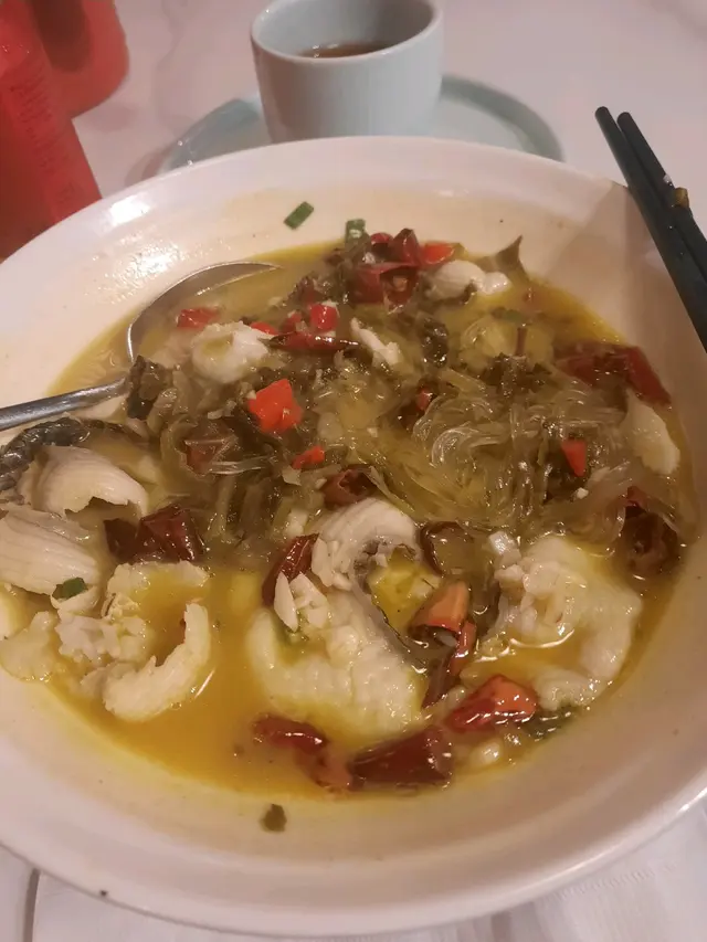 當日無咩人,所以感覺幾自在,似普通中菜館嘅裝修,乾淨正常金湯酸菜魚份量幾大,幾好送飯嘅一道菜,酸湯好開胃,加埋有小小辣,唔會太over,魚都幾滑,就算煮耐左都唔會鞋,食到咁上下可以加啲額外配料落去,加啲菜果啲吸晒啲汁幾邪惡,薯粉都好QQ彈彈手撕包菜朋友稱讚嘅一道菜,包菜炒完仲保留到爽脆口感,同時又好掛汁,辣味十足…查看更多