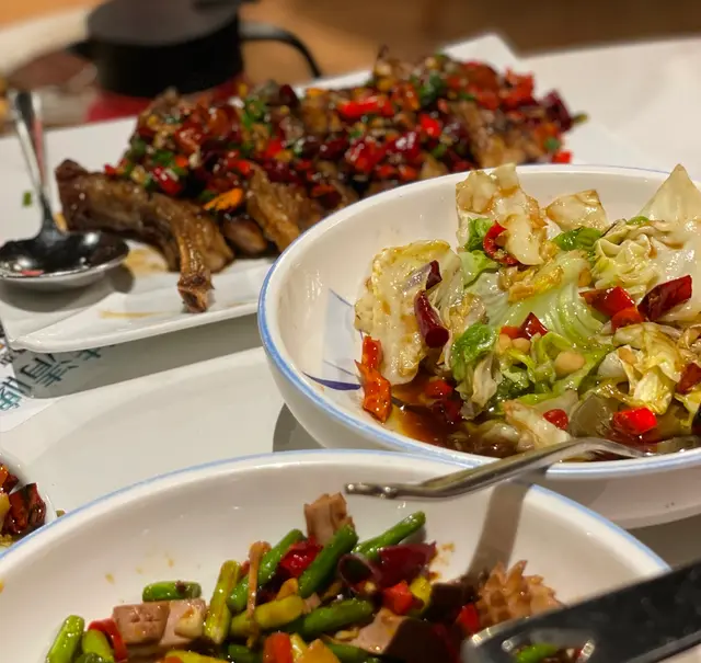朋友聚會,唔想打邊爐又唔想食大排檔,搵左一間係商場隔雜條巷嘅湖南湘菜,平時行過無留意都唔知有喱間野,上面原來好大,地方好闊落,完全估唔到