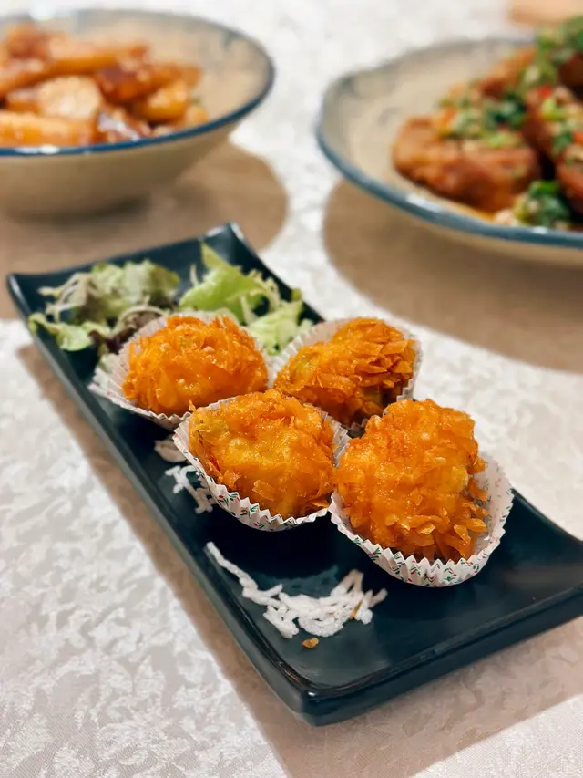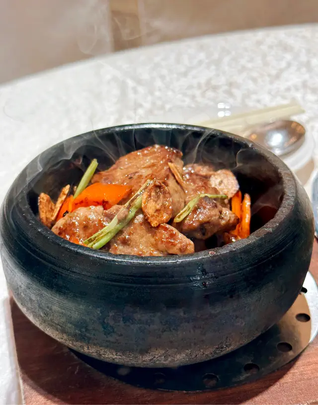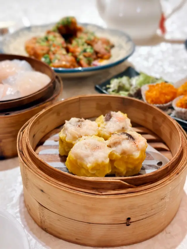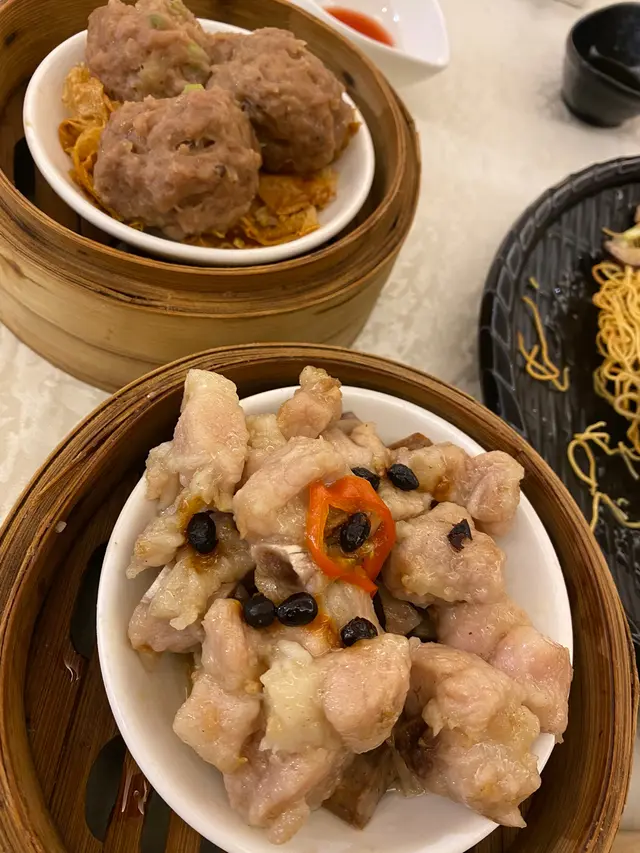 平時成日飲茶都冇飲過呢間,以為係做婚宴多,原來朝早飲茶都唔差,環境仲好靚添☺️行森林風,裝修雅致🥢筍尖蝦餃皇🥟 $56呢到啲蝦餃超大粒😳😳皮薄晶瑩剔透,蝦肉飽滿💯🥢蟹籽燒賣皇🦐 $50燒賣外型靚仔,肥瘦適中,蝦同豬肉新鮮爽口,不錯🥢雀巢黃金球🍤 $50外皮金黃香脆,小心辣口,餡料係粒粒蝦肉同蝦滑,如配甜辣醬就perfect🥢火山骨🌋$88味道係泰式x中式,排骨底炸過,似椒鹽排骨個底,淋上酸甜蔥香泰式辣汁,惹味又香口,送飯一流,下次黎都想再食呢個🤩🥢XO醬炒帶子腸粉🥡 $68 唔係珍珠帶子,抵讚🥹腸粉唔會太油,味道偏輕,灑上芝麻更香,鍾意食濃味啲可自行加辣椒醬🥢石鍋蒜片牛仔柳🥩 $88石鍋底黎遠上緊菜都聞到好香,牛柳帶焦香,口感軟腍,味道偏濃,充滿蒜香🫖茶位 $15/位有ClubOne會員卡食物會有7折,比較抵食,環境質素都比附近嘅茶樓好👍🏻坐得好舒服😌查看更多