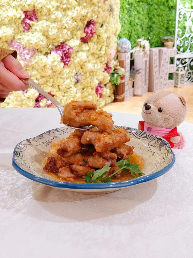 間中去飲茶慢慢享受一下,享受悠閒的時光😎。這次去了荃灣愉景新城 Club One,位於商場三樓食肆區。環境裝修挺有氣派的,另一邊有一大幅花牆做裝飾,可以去打卡一下🙈。-▪︎火山骨 HKD$88中式混合泰式做法,堆砌成小山丘的模樣,令人感覺吸引又霸氣😎。香口的椒鹽配上泰式醬汁,既開胃又惹味的味道。火山骨肉質腍身,做到挺入口的口感😚。-▪︎煎封黃花魚 HKD$68金黃色的賣相挺吸引,而且味道挺香的。做到皮脆內嫰,肉質嫰滑鮮味。煎香後連骨也可吃,口感脆卜卜的🤤。-▪︎咖喱蒸土魷 HKD$42 這個是傳統的點心,感覺是較惹味的。土魷肉質爽口味道鮮甜,咖喱味道微辣🤤,這個份量算是多的。底下有粉絲,吸入醬汁味道濃厚🤤。-▪︎咸菜胡椒豬肚 HKD$88這個是原鍋上,未打開蓋子已聞到挺香的味道,胡椒豬肚份量多。豬肚肉質腍身爽口🤤,還有蘿蔔和酸菜等配料,吸入湯汁味道香濃😍。湯底味道鮮味,帶胡椒微辛的味道,所以挺香口惹味。-▪︎素咕嚕肉 HKD$88素吃的較少見決定一試,賣相跟平常的差不多。用了炸麵根來代替肉,口感脆卜卜的。酸酸甜甜的味道,醬汁用來拌飯挺好的😚,還有爽脆的三色椒吃。-▪︎生磨蛋白杏仁茶 HKD$50飯後來個甜品挺享受的,熱辣辣的味道很香。蛋白份量多,口感紮實不易散,杏仁茶味道微甜😍,是個既滋補又潤喉的甜品。-查看更多