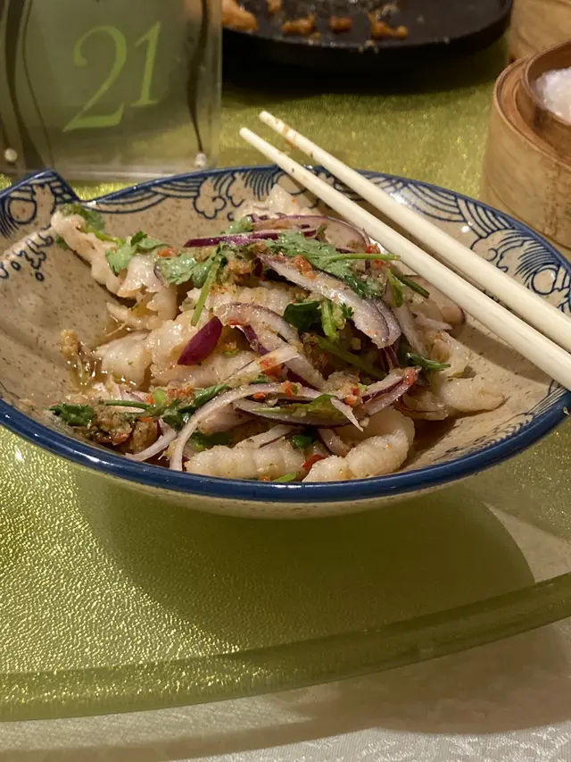 星期日早咗起身又見肚餓決定拍醒老公一齊去飲茶😂,近近地行去愉景新城飲茶之後可以shopping 。頂樓原來有間會所1號 ,酒樓四周佈置成花園感覺,燈罩用了雀籠設計,非常特別,而且有好多花花草草裝飾,超少女心。點心款式選擇比較少,一般大路傳統點心,但反而小食小菜款式挺吸到。筍尖蝦餃皇每次飲茶都一定要食蝦餃,這兒蝦餃每隻份量十足,一口咬下外皮Q嫩有彈性,新鮮蝦仁與筍尖的完美搭配,口感層次分明。山竹牛肉球有香濃牛肉味,而且加入了芫茜,醮一些喼汁,特別開胃。鮑汁雞腳以特製鮑魚汁以慢火將雞腳花生炆至軟腍入味,鮑汁美味鮮甜,花生軟淋可口,雞腳香滑骨膠豐富。Xo 醬炒帶子腸粉腸粉煎至兩面金黃焦香,加入XO醬、生抽和老抽炒勻,上色均勻,入口軟糯,沾上少許辣椒醬,更加滋味。泰式火山骨將排骨疊高再淋上秘製泰式酸辣醬汁,火山骨肉質軟腍,味道酸甜不膩。石窩蒜片牛仔柳牛柳片加上蒜片煎煮,最後放上石窩上枱,蒜片香脆可口,牛仔柳肉味香濃,鮮嫩多汁。生磨蛋白杏仁茶入口滑身順喉,又充滿蛋香,杏仁香濃清香,滋保潤肺。查看更多
