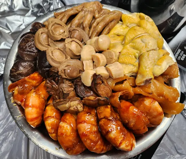 想當年曾在這家分店飲宴,啲食物都幾高質啊,當時實在驚喜,所以印象好好。上年疫情時經網上試了個四人新春盤菜,好回味所以今年直接打去訂。今次訂了一個八人自取盤菜價錢$1488,味道如印象中的好!除咗蠔豉同鮑魚冇想像中咁大隻,其餘嘅都好大件,包括大蝦都新鮮好食;瑤柱同鴨掌都炆得夠透,食落好滿足!其餘的食材都係又大件又炆得夠入味,讚!盤菜的汁係另外一個樽裝住,我地加了未夠半樽都非常夠味了,之後都只係加清水,否則會太咸。下年新春都會繼續幫襯查看更多