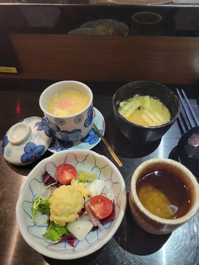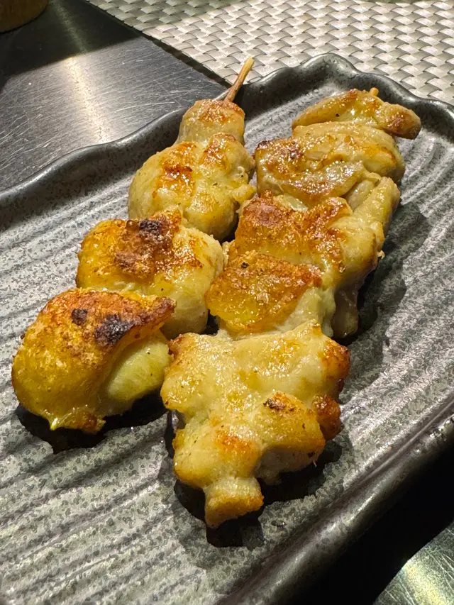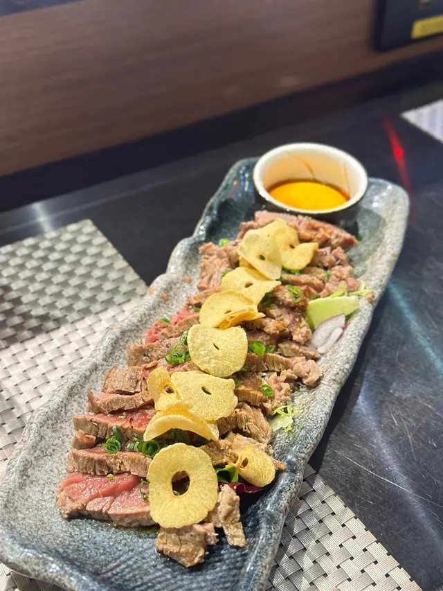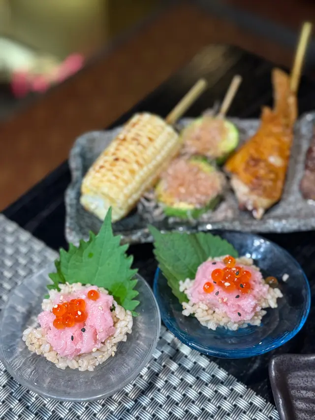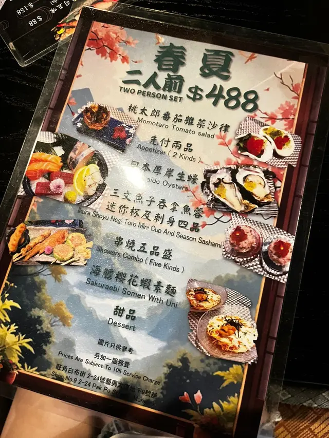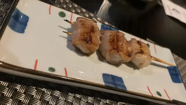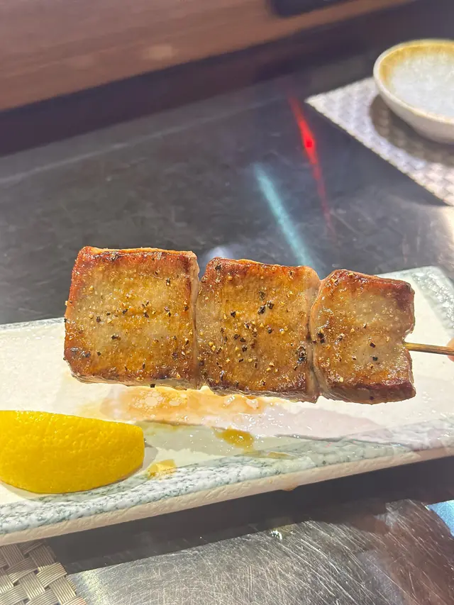 應朋友約, 今晚到了這間位於旺中帶靜嘅白布街日料小店食dinner。呢間餐廳什有人氣, 晚市7點後全場坐滿, 串燒幾乎冇停過。吧檯位置更可見到串燒師傅處理串燒。小店除供應串燒, 仲有少量刺身壽司、小食等…【安格斯牛肉他他燒】HK$148安格斯牛肉只係邊位經火炙, 大部份肉質為刺身, 肉質鮮嫩冇筋, 沾蛋汁食, 口感黏滑, 還配有炸蒜片、蔥粒平衡濃郁肉味。【塩燒厚切牛舌芯】HK$58牛舌芯果然厚切, 表面燒得帶點焦黃, 依然keep到肉汁, 口感爽彈, 加咗鹽吊味, 味道同口感同樣一流, 值得推介!【雞胸脆骨】HK$26口感非常爽脆, 連帶些少雞肉, 加咗七味粉, 香口惹味。【雞軟骨 (兩串) 】HK$28沒有雞肉連帶, 口感更為爽脆, 同樣香口惹味。【紫蘇葉雞皮蝦串】HK$48外層雞皮燒得金黃微脆而不油, 入面隻蝦爽彈, 夾住紫蘇葉食, 平衡到雞皮謹有嘅膩, 再多一份紫蘇葉獨有嘅清香。【日本燒蕃薯】HK$36厚切日本蕃薯烤後暖暖的, 很香甜。【鵝肝多士】HK$68鵝肝煎得外微脆內軟, 脂香味很重, 內裡近乎入口化開, 伴有松露醬先行沾點, 味道更昇華, 配上多士同埋沙律平衡油膩, 令人回味。【挪威三文魚壽司五味】HK$88分別有三文魚、火炙三文魚、火炙芝士三文魚、三文魚軍艦同埋花之戀, 每款手握壽司握得唔會太實, 口感唔錯。【和風燒飯團】HK$32飯團表面燒得金黃焦脆, 入面軟淋不乾身, 咸咸香香幾惹味。…查看更多