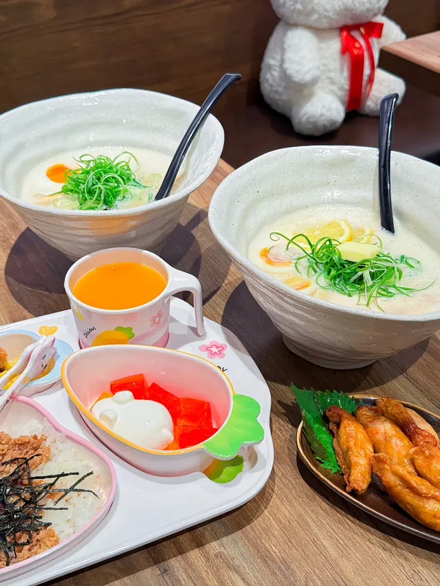 #吃貨心柔日誌 👧🏻 月詠泡泡兔陪你 🐰 品嚐雞白湯拉麵 🍜月詠兔兒童餐❤️親子Foodie又出動啦❤️今次Family Day 一家三口去到📍奧海城品嚐來自鹿兒島「月詠」的雞白湯麵,每張枱都有一隻巨大又可愛的月詠泡泡兔🐰陪你打卡吃麵📸「月詠」推出的二人餐價錢好優惠💥只需$208 已經包含2款自選招牌拉麵 ‼️(亦可以加錢轉換限定款拉麵) + 自選小食1款及飲品2款。我們選了招牌 – 原味雞白湯拉麵🍜及檸檬牛油雞白湯拉麵🍋,拉麵一來到,先品嚐湯頭,白濁色的雞白湯十分濃郁,口感順滑😋慢煮雞胸肉質好嫩滑,拉麵爽口彈牙,一試難忘👏🏻小食方面必須推介酥脆雞皮餃子,以雞皮作為餃子的外皮,炸得香口之餘,內餡啖啖肉,好惹味👍🏻至於女女👧🏻一定是選$68「月詠兔兒童餐」🐰個餐盤好靚好可愛😍吸引到小朋友已經成功了一半👏🏻再加上美味的免治雞肉飯、香口小食及小朋友最期待的甜品 – 日本牛乳兔仔奶凍及啫哩😍成功令小朋友吃清光。親子友善的餐廳👨👩👧豐富好吃的一餐,下次一定要再來🙌🏻📍月詠 奧海城 2 期 1 樓 146A 號舖…查看更多