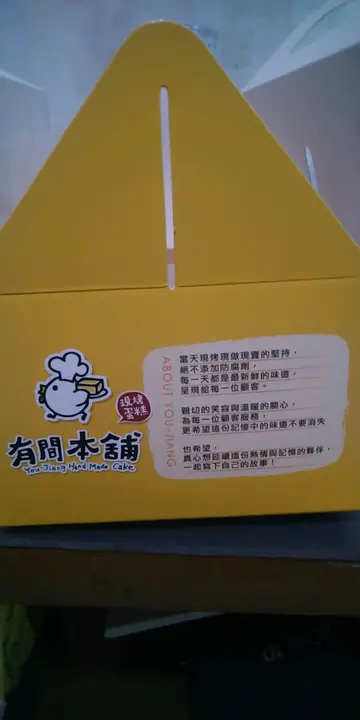 有间本舖 地址: 湾仔轩尼诗道365-367号富德楼地舖电话: 34821971=====================台湾古早味蛋糕都hit了一阵子啦,我都几过唔小店架出品。呢间近公司,一直都无机会,见佢原味只系$30一份呀,今日放工去探呀妹,买一份上去齐齐食个盒好可爱,而蛋糕上而印压了招牌鸡仔样。原味蛋糕食架系松软湿润,佢中间系够水份的,边位就略为干身啦。甜度方面刚刚好,一大块切到6-8件,食一件作饭后甜点又唔会太滞。唔同时间仲会出炉其他口味架,以$30来说是抵食值得一试。建议翻热一下,蛋糕味更香。
