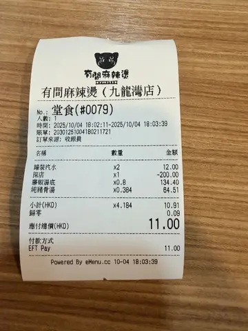 首先好唔清楚啲step,去到夹𩠌,又唔讲要夹埋面,因为佢啲面同𩠌系混合甘摆,令人好混乱,去到比钱收钱个个又唔讲,又唔问加唔加白饭,最尾出到黎成碗人地食剩既厨余甘⋯🤡🤡🤡汤底正常,藤椒味唔算好出,不过不失。问人加唔加杯柠檬茶,有香矛又唔讲,一饮出晒事,唔系个个都好香矛味,好难饮,成间野就好唔清唔楚⋯我朋友佢个碗野,几片肥牛,几个白菜仔,两片火腿,重有几粒丸,加个冻柠茶埋单55蚊(就系呢碗野成碗食剩厨余甘,一大碗汤上面浮住块火腿同菜,无面底)我个碗夹左少少薯粉(谭仔正常面底既一半左右,我有面底因为我走左去问人,我朋友系我前面比钱佢唔知),3片猪肉,一个牛丸,一个墨鱼丸,少少娃娃菜同10条海带,一个猪大肠,一条蟹柳,埋单66蚊,一个普通女仔食完都唔够饱,最后去左食返个老麦