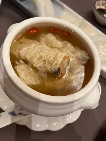 有朋来自远方,所以简左望月楼食中菜 位于又一城L1层,落地玻璃采光好,望住九龙塘市景 ,装修走现代中国风,枱距够阔,倾偈唔怕隔离枱听到 🍴灌浆萝卜糕($68) - 外脆内软,萝卜丝比例多过粉浆 - 但油腻感重🍴鲜虾有机菜煎腐皮卷($78) - 腐皮脆到有声,虾肉爽弹 - 所谓「有机菜」食唔出特别 🍴雪山叉烧焗餐包($68)⭐️必点 - 酥皮松化到一掂就碎,馅蜜汁爆浆 -但食唔出系咪叉烧🍴蜜汁叉烧肠粉($73) - 肠粉皮薄但易穿,好考验筷子功 🍴碧绿野菌素菜饺($68) - 素食友好之选 🍴杏汁炖白肺汤($388/窝)⭐️必点 - 炖汤依然出色,杏香浓郁 - 肺汤平时好难处理,值得叫 - 每人都饮到1.5碗为左白肺汤绝对可以一战,雪山叉烧包亦都唔差,个汤真系好令人印象深刻。…查看更多