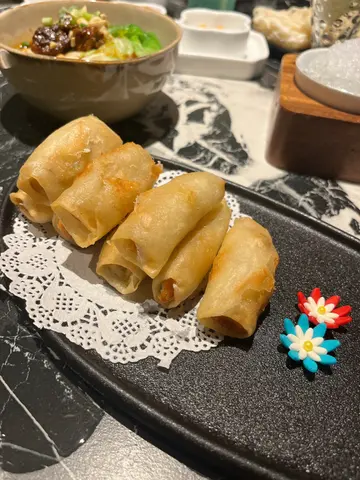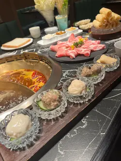 最近和朋友相约在中环的“朝天门”重庆火锅店小聚。火锅店装修融合了中式传统与现代风格,环境宽敞明亮。发现了火锅店有包厢和K房,但注意到店内设有独立房间,适合多人聚会或想边吃边唱歌的客人,私隐度和娱乐度都不错。我们点了一份“商务双人套餐”,内容很丰富,性价比极高!服务方面,店员态度亲切,加汤、换碟都很及时。一开始先上了“重庆小吃组合”,包括辣味蚕豆、脆麻花和云片糕。蚕豆香辣酥脆,麻花甜甜哋脆卜卜,云片糕软糯清甜,入口粉粉的很特别,几款小吃都有特色。锅底选了“玉玺鸳鸯锅”——麻辣汤底和菇菌汤底。麻辣汤香浓醇厚,辣度可选,麻味循序渐进越煮越香;菇菌汤则清淡鲜甜,适合涮蔬菜和提鲜。值得一提的是,每人前面都有一片白面包,觉得好新奇,后来店员介绍是用来吸走食材表面多余油分的,真的很贴心!多款调味料西班牙黑豚梅肉脂肪分布均匀,肉质细腻,涮麻辣汤底尤其香。特色三拼包括黄喉、黑毛肚和鹅肠,都非常新鲜,鹅肠只需涮几秒,口感脆嫩无腥味。丸滑拼有牛丸、虾滑、墨鱼滑和鱼腐,手工制作的口感弹牙,虾滑特别鲜甜。蔬菜有娃娃菜和金针菇,吸饱汤底后非常入味。8秒响铃名不虚传,轻涮即软,豆香浓郁。春卷炸得酥脆,牛肉面牛肉味道浓郁,微辣的口味,最后以乌冬收尾,饱足感十足。若下次有朋友聚会或庆生,不妨试试他们的包厢或K房,边唱边涮,应该会更尽兴。…查看更多