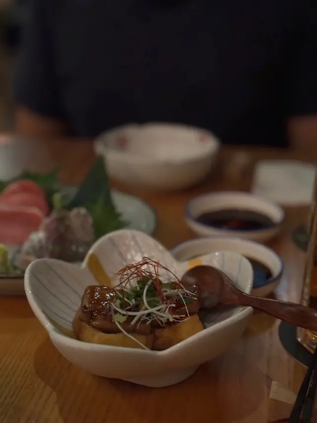 Had the most incredible meal recently, and I need to gush about every single thing I ate, let’s dive in! First off, the Sinful Tamagoyaki. It’s this fluffy, buttery egg roll that’s sweet and savory in all the right ways. Like, melt-in-your-mouth good. You take one bite and immediately think, “Yeah, I sin for more of this.” Then there was the angler fish liver. Let me tell you, this stuff is rich. Like, “I need a sip of something to balance it” rich, but in the best way. It’s creamy, almost buttery, with this subtle briny kick that makes it feel super luxurious. The miso-glazed black cod was chef’s kiss. The fish itself is so tender it practically falls apart with a fork, and that miso glaze? Sticky, sweet, a little salty Grilled white eel skewers next. Eel can be tricky, but this was spot on. The outside’s got a little char, which adds this nice smoky flavor, and the inside is juicy and soft. That sweet eel sauce they slather on? Perfection. It’s not too heavy, just enough to make each bite pop. Okra might sound boring, but man, it was the perfect palate cleanser. Crunchy, fresh, just a little bit of that slimy goodness (you know what I mean). Sometimes you need that simple veggie to reset, and this did the job. Beef tongue? Yes, please. Thick slices, grilled just right – tender but with a little chew, so you actually feel like you’re eating something substantial. They didn’t over-season it, which is great because you get that pure, meaty flavor. I went back for seconds before I even realized it. Cold udon was next, and wow, so refreshing. The noodles are chewy in that satisfying way, and the light dashi broth they toss it in is just salty enough. It’s like a cool breeze for your mouth after all the grilled and rich dishes. So simple, but so good. Thick-cut lamb chops, these were a standout. The outside’s crispy with herbs, and the inside? Pink, juicy, so flavorful. Lamb can sometimes be gamey, but this was mild and delicious. Washed it all down with yuzu wine, which was perfect. Bright, citrusy, a little sweet but not cloying. That yuzu zing cuts through the richness of the food, so it’s like a little reset with every sip. …查看更多