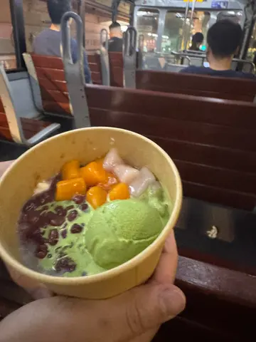 【冰火双重奏】绿茶雪糕与豆腐花的相遇犹如泼墨山水,温润豆香托起一抹茶香轻盈,微苦尾韵恰好中和甜腻。弹牙芋圆裹上融化雪糕,在齿间迸出冷热交融的惊喜。另一碗海底椰椰子雪糕则将热带风情凝缩,浓郁椰浆化作丝绸滑过仙草冻,琥珀色仙草释放草本甘苦,与椰子雪糕形成绝妙对比。两款甜品皆以手作芋圆画龙点睛,白玉紫薯交错的浑圆小团,在冰凉与温润间筑起Q弹桥梁。老板巧妙运用传统糖水元素玩转新食感,每匙都是复古与创意的完美交叠,堪称夏日消暑的层次感首选。