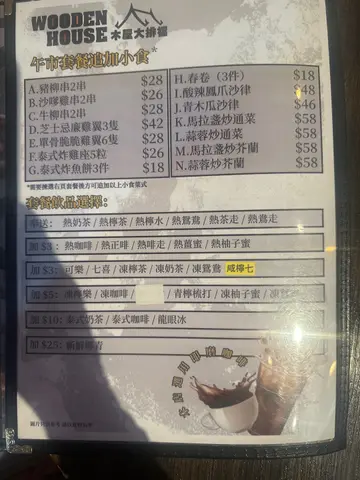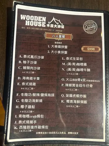 大埔只有极少数嘅泰式餐厅,木屋系其一。疫情之前都久唔久帮衬一下疫情后就好少再去,上几星期帮衬过一次都可以,所以今次又再嚟帮衬。今次多啲人所以叫多几样菜式试下:明炉冬阴功乌头: 冬阴功汤嘅质素都几代表泰式餐厅嘅嘢食,佢个冬阴功汤真系非常之淡,好似系有冬阴功味嘅水咁,其实个炉咁细个汤都系得好少,真系唔需要再沟水啰。配料有劲多嘅秀珍菇,但系个汤真系好唔掂。马拉盏炒椰菜苗:呢个份量非常足够,但味道稍为淡咗啲,马拉盏味薄弱。烧菠萝:落单时已经同咗经理讲话可唔可以烧得香口啲因为上次食过好似冇烧一样。但经理话烧完会好干。嚟到见到真系就咁落少少糖,再用火枪辣过就算,完全带唔出菠萝嘅甜味,之前食过真系好食。辣椒膏猪颈肉炒饭:谂住呢个会好辣好惹味,点知嚟到完全系西炒饭嘅质素连我六岁嘅女都食到😂。有少量猪颈肉粒,普通炒饭质素。小食拼盘(大):总共有六款小食,四款有四件另外酿鸡翼同咖喱角就只得两件,呢个就正正常常但系最弊之处佢垫底嘅沙律菜竟然系烂🥲铁板蚝仔煎蛋:全晚最正常呢一个蚝仔冇壳唔太腥,配埋炒蛋再加个辣椒酱不错。本来都未系好够饱,不过都系返去煮面算。…查看更多