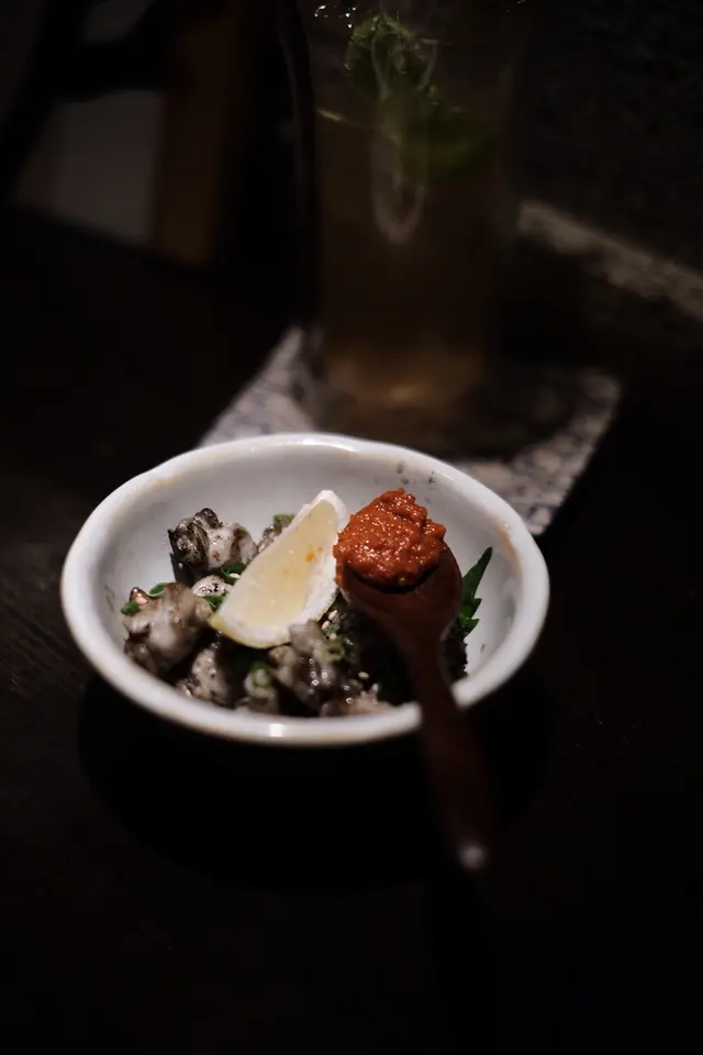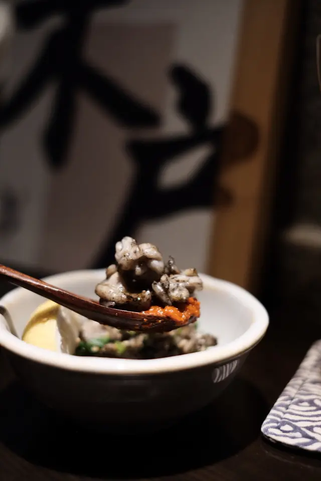 餐廳以明爐炭火烹製傳統宮崎和九州鄉土料理 菜式由日籍總廚木村潤一郎主理 餐廳門面設計低調 採用深色系的木材元素 營造出一種神秘而溫馨的氛圍 店內裝潢融合了傳統的日本燒鳥亭風格 並配有開放式廚房及吧台設計 讓顧客可以近距離欣賞廚師的精湛手藝.香蒜蟹味噌搭配蔬菜條是坊間較少見的菜式 以蘆筍 西芹和青瓜搭配濃稠的蟹味噌 清爽的蔬菜與濃郁的蟹香相融合 口感層次豐富 .炭烤菜式中頗喜愛炭烤蒲燒鰻魚 師傅將鰻魚燒好後隨即放上炭火爐加熱 鰻魚肉質柔軟 醬汁甜中帶鹹 搭配上山椒粉或清爽的山葵 還能帶出一絲微辣的滋味 極具風味.除了炭烤菜式 南蠻炸雞是店內的招牌菜式 是總廚的家族祖傳秘方 採用原塊雞腿肉進行三次炸製 再沾上特調的甜醋與鹹香的明太子他他醬製作而成 外層酥脆 肉質軟嫩多汁 相當開胃 .最後甜品有炸宮前丸子 外層香脆 內裡軟糯並帶有空氣感 搭配黑糖漿和脆米 微甜而不膩 為整頓晚餐劃下完美句號.總括來說 這裡的食物質素高 師傅技藝熟練 若然想享受媲美日本地道燒鳥的體驗 這裡無疑是不容錯過的選擇💁🏻♀️…查看更多