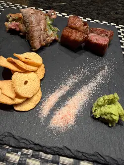 铜锣湾人气铁板烧店「本命铁板烧」推出海鲜盛套餐,啱晒一众海鲜迷,而且大部份是贵价海鲜,例如「澳洲黑金鲍鱼」、「龙虾」、「北海道帆立贝」和「银鳕鱼」等等,真系性价比超高,而且消费满 $1500 仲要送一份「溏心濑尿虾」,基本上两个人食一定可以送得到,完全回晒本!🌟海鲜盛套餐 $ 888 位 (两位起)✨前菜|蟹肉芝士最中饼香口酥脆外层包住满满蟹肉,加上芝士更滋味✨澳洲黑金饱鱼|超巨型既鲍鱼口感烟靭弹牙充满牛油香配上用肝酱做的酱汁,浓郁鲜味✨龙虾 |虾肉鲜味又弹牙,用虾头膏汁调味更加唔惹味✨北海道帆立贝|巨型带子煎得外脆内Juicy,配上菠菜忌廉汁,味道非常之格✨鸟鱼子蛏子|新鲜蛏子肉质鲜嫩,加上乌鱼子增添鲜味🎁溏心濑尿虾|甚少地方可以食到,整只濑尿虾中间部份都是虾膏,入口Creamy到不得了✨ 银鳕鱼 |西京烧腌制之后味道甜香,肉质嫩滑✨黑豚肉薄烧 |用煎脆薄饼包住豚肉生姜烧,就像食春卷一样,外层香脆肉质Juicy✨炒饭|吸物|炒菜接近尾声分别奉上高菜炒饭、龙虾面豉汤、炒椰菜,炒饭师傅炒得有镬气之余味道一流,配上一碗热汤和炒菜,美味又饱肚✨甘味 |焦糖多士、朱古力雪糕甜品多士非常邪恶,但相当美味,配上一口朱古力雪糕,完美之铁板烧晚餐 …查看更多