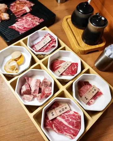 一坐下,店员就送上满满的牛肉头盘,非常吸睛🤩。食啱再谂吓encore边样,呢个安排系几唔错。我哋觉得以下几款几好味👉必推美国SRF极黑牛!啲肉质靓到震,每一片都好似雪花纹咁靓,油花分布均匀到癫!烧肉质软滑到溶喺口里面,啲油花即刻化开,真系食完一片就想再嗌多碟!👉牛板腱嘅表现都好出色!呢个部位嘅肉质特别有口感,最正系佢个牛肉香特别浓郁,配埋啲特制酱汁,真系绝配!👉牛舌就真系一绝!啲牛舌切得好薄,烧到啱啱好嘅时候,外皮微微焦香,入面仲系嫩滑多汁,一咬落去个牛舌香浓无比!软中带韧,真系食到停唔到口!