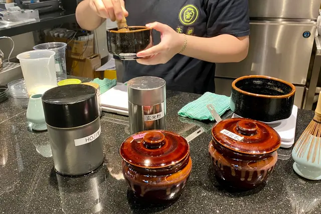 之前行開K11Musea, 去到地下foodcourt嗰層,就會聞到一陣陣嘅茶香味。 行過去睇呢間專賣茶品嘅鋪頭入面,主打抹茶同玄米茶,亦都有唔同嘅配搭包括: 沙冰、奶昔、雪糕 等等,各有特色。(好似全部$38)由於玄米茶比較少見,所以我就揀咗綠茶玄米茶配牛奶。綠茶玄米奶泡($38)落完order,另一位店員會即場用抹茶掃炮製抹茶🍵。你可以見到佢即場用綠茶粉加牛奶攪勻, 未飲前已經有觀賞價值。加分! 另外,當你飲落去嘅時候,你會感到一陣玄米茶味比較特別,唔會話單一抹茶味,唔似普通Matcha Latte咁! 所以,我比較鍾意佢嘅玄米茶系列。而且,奶泡感覺輕盈,好鍾意呢種質感😝。…查看更多