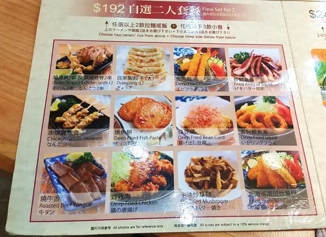 This Japanese noodle restaurant is located in TST, with the owner / chef having lived in Japan for many years and learning his trade there. But in fact he originates from Fujian, and when we went there today I could still pick up bit and pieces of his conversation with his wife (?) in his native language.We ordered the dinner set for two, with two bowls of noodle and three snacks, and I picked the Char Siu Noodle. The quality of the noodle is good, with the texture of the right chewiness and the Sapporo style pork soup rich, and with the white miso which is not overly salty. Also, it is not too oily as in many other such restaurants in town. Ivy had picked the Crab Stick Noodle which is equally good. The snacks we chose included the Grilled Capelin, Fried Fish Cake and Homemade Dumplings. The capelin is grilled upon order, served immediately after grill so quite tasty. My comment on the fish cake is that it is too thin, even though the flavors are decent it did not offer sufficient 'bite'.The dumplings are in fact very good in my opinion, with a lot of fillings, juicy and delicious. It also was of a good portion, having a total of six pieces. Dipping in the dumpling sauce brings some vinegar flavors which balances with the oil coming from pan-frying the dumplings. A good appetizer as any you would find in restaurants in Japan.The services are good with the staff offering advice on the order to get what you want at the best deal from the different dinner sets. Our set costs $245 which is also of good value. My overall rating for this restaurant is 65/100.…查看更多