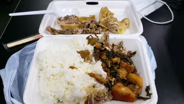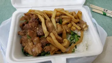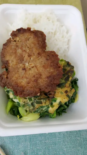 果日,夜晚去到上水交收物件,事成之后我同太太来到石湖墟,她找她的斋铺、我找我的外卖饭盒。而且,近期兴食两𩠌饭,眼见这家《李记快餐店》灯火通明,而且亦有不少人在排队。咁,我就一于来买个饭盒仔。在新界,尤其是上水这一个地方,本地围头同客家既口味应该会是比较正宗。所以,我选了客家炆鸭加酿苦瓜来 create 这一合两𩠌饭。回到家,应该只是半小时左右,打开来吃,虽感觉到饭仍有热力,但炆鸭同俾得果一旧仔既酿苦瓜系冻既,再者,连赠送的椰菜也是没有任何热力。加上,此店用的米,质素应该麻麻,令到整盒饭都唔好食......两𩠌饭,平平地系好吸引人呀,但,至少都要好食先得架。…查看更多