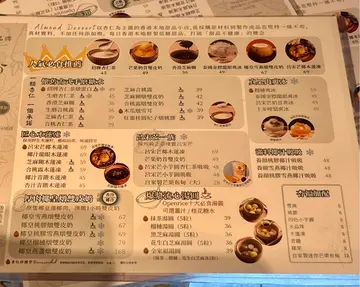 杏仁茶炖蛋白 / 汤圆桃胶炖双皮奶 / 龙眼爽冰 / 招牌杏仁咖啡