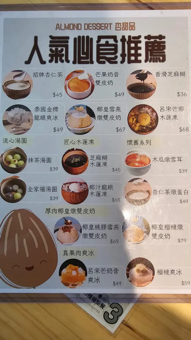 行過旺角, 想食個甜品, 但失望而回 食物 : 招牌杏仁茶燉雙皮奶 $49 ~ 諗住是招牌甜品, 應該唔會有伏, 點知食落好稀, 好似未形結好, 食過一次就怕, 而且價錢唔平, 好失望 香滑芝麻糊 $36 ~ 味道正正常常, 但收這個價錢有點貴 環境 : 小店好細, 是開放式, 座位幾迫, 唔係太舒服 服務 : 有兩個職員, 態度OK 價錢 : HK$85 (無加一服務費)…查看更多