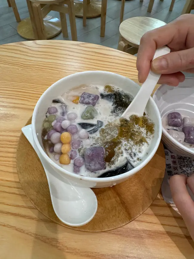 平日夜晚見到冇咩人?咁啱又一大班網友群聚,就搵咗間糖水舖試吓,今次試咗三款甜品,感覺好滿足!😋 首先係紅棗桂圓杞子燉桃膠,湯底溫暖濃郁,紅棗同桂圓嘅天然甜味同杞子嘅微酸完美融合,桃膠滑溜Q彈,啖啖滋潤,特別適合秋天補身!🍲🌿 再嚟係芒果布甸,芒果粒鮮甜多汁,不過食得出唔算話啲芒果太靚,配上滑不留手嘅布甸,奶香濃郁同芒果嘅清新互相襯托,金色匙羹一舀,可能我特別鍾意布甸,真係停唔到口!🥭🍮 最後嘅芒果黑糯米更是驚喜,濃香嘅黑糯米同鮮芒果嘅甜美交織依兩樣嘢夾埋一齊一向冇得輸,口感軟糯又有層次,啖啖都充滿幸福感!🥄🌾…查看更多