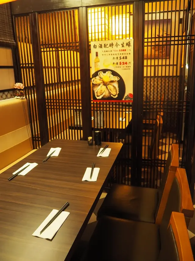 居酒屋燈光柔和,坐位間隔都有適當既距離,酒櫃裏面放滿各式各樣既清酒